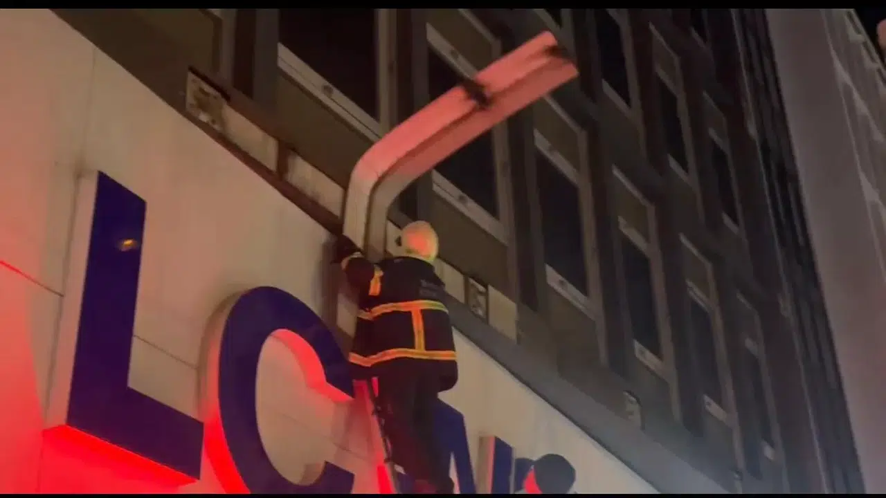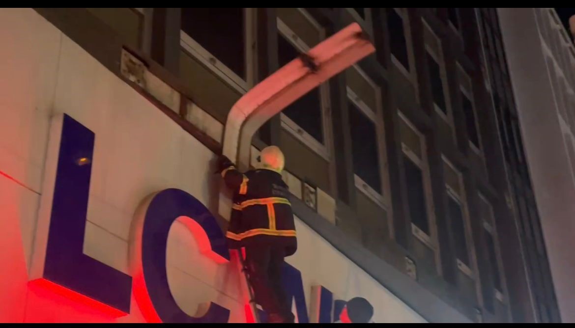 Atatürk Caddesi’nde bir işyerinin üstündeki sac tabela parçası ise az kalsın kazaya yol açacaktı. Polisler emniyet şeridi çevirdi, itfaiye ekipleri ise merdivenle çıkarak sac parçasını söktüler.
