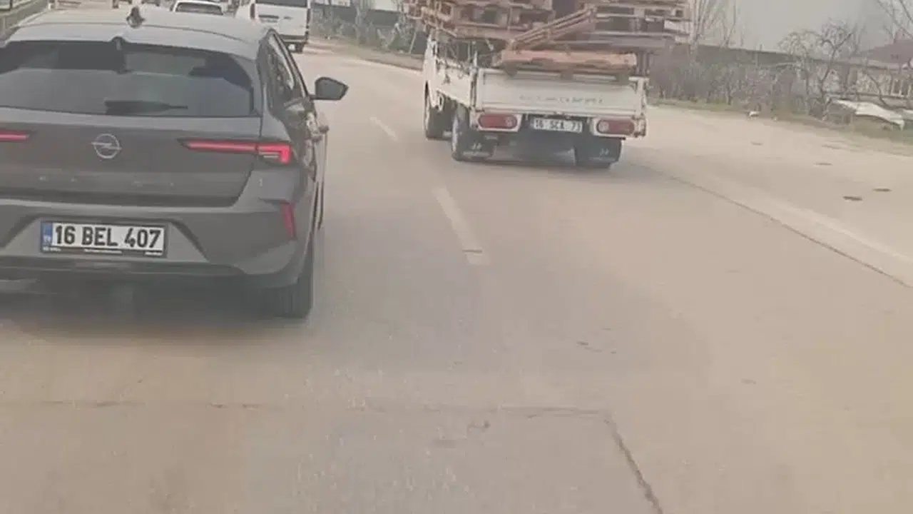 Bursa’da tehlikeli taşımacılık kameraya yansıdı.