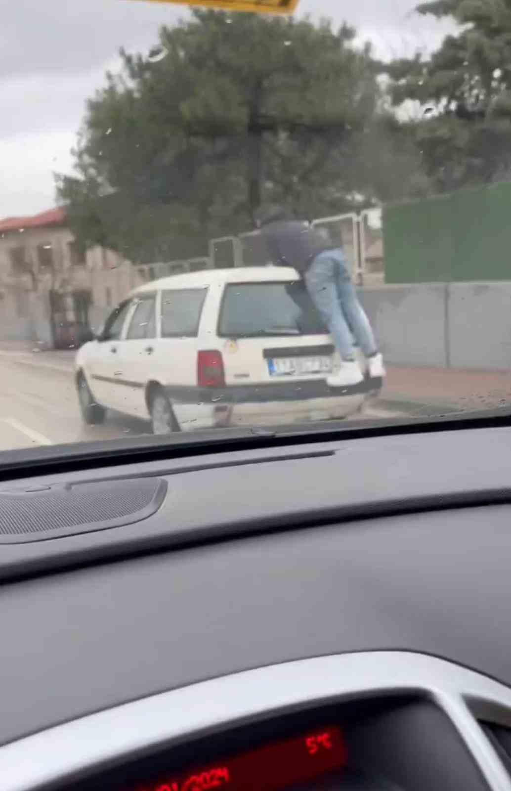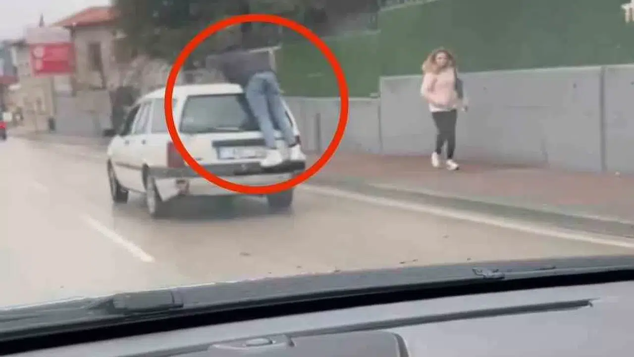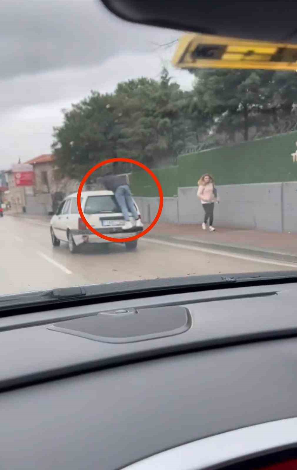Bursa’da bir kişi, otomobilin bagajına basıp tavanına tutunarak ölüme meydan okudu. O anlar anbean amatör kameraya yansıdı.