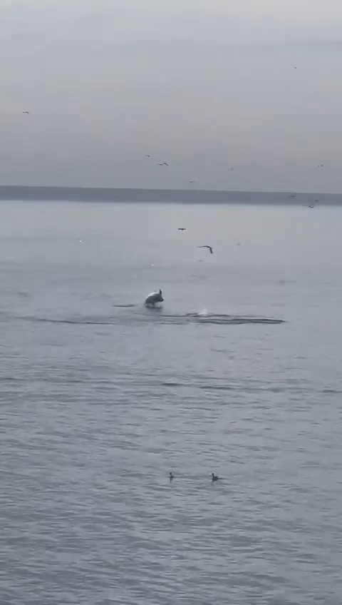 Mudanya ilçesinde zaman zaman ortaya çıkan yunuslar, sahilden kendilerini izleyenlere resital sundu. Yürüyüş bandına çok yakın mesafelere kadar gelen yunus balıkları suda uzun süre oyunlar oynadı. Zaman zaman suyun üzerine çıkan yunus balıkları bir süre sonra körfezin serin sularında gözden kayboldular.