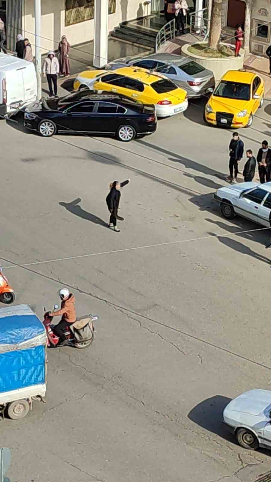 Edinilen bilgiye göre olay, Şanlıurfa’nın Haliliye ilçesindeki Atatürk Bulvarı üzerinde yaşandı. Elinde satır olan bir kadın, yolu kesip bağırmaya başladı. Kısa sürede toplanan kalabalık, kadını sakinleştirmeye çalıştı. İki genç, “Kocam buraya gelsin” diye bağıran ve isminin F.D. olduğu öğrenilen kadının elindeki satırı almaya çalıştı. Olay yerine gelen kocası M.D. tarafından elindeki satır alınan kadın bayılarak fenalık geçirirken kadının elindeki satırı almaya çalışan 2 genç ise bir araca binerek olay yerinden uzaklaştı.