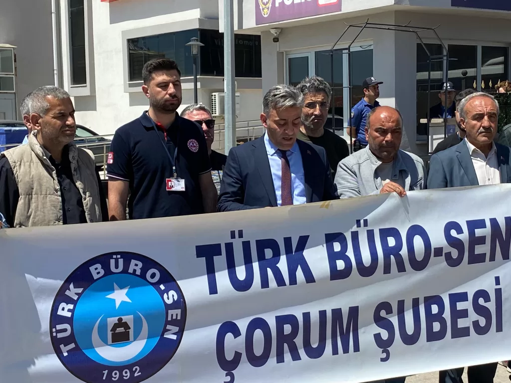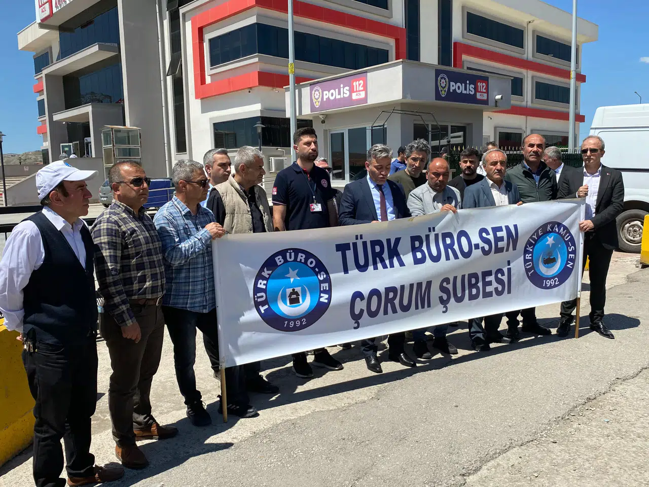 Türk Büro-Sen Çorum Şubesi, 112 Acil Çağrı Merkezi Müdürlüğü önünde bir basın açıklaması yaptı. Basın açıklamasına, Türk Büro-Sen Çorum Şube Başkanı Emir Dağaşan, sendika yöneticileri ile Türk Büro-Sen’e üye olan acil çağrı merkezi çalışanları katıldı.