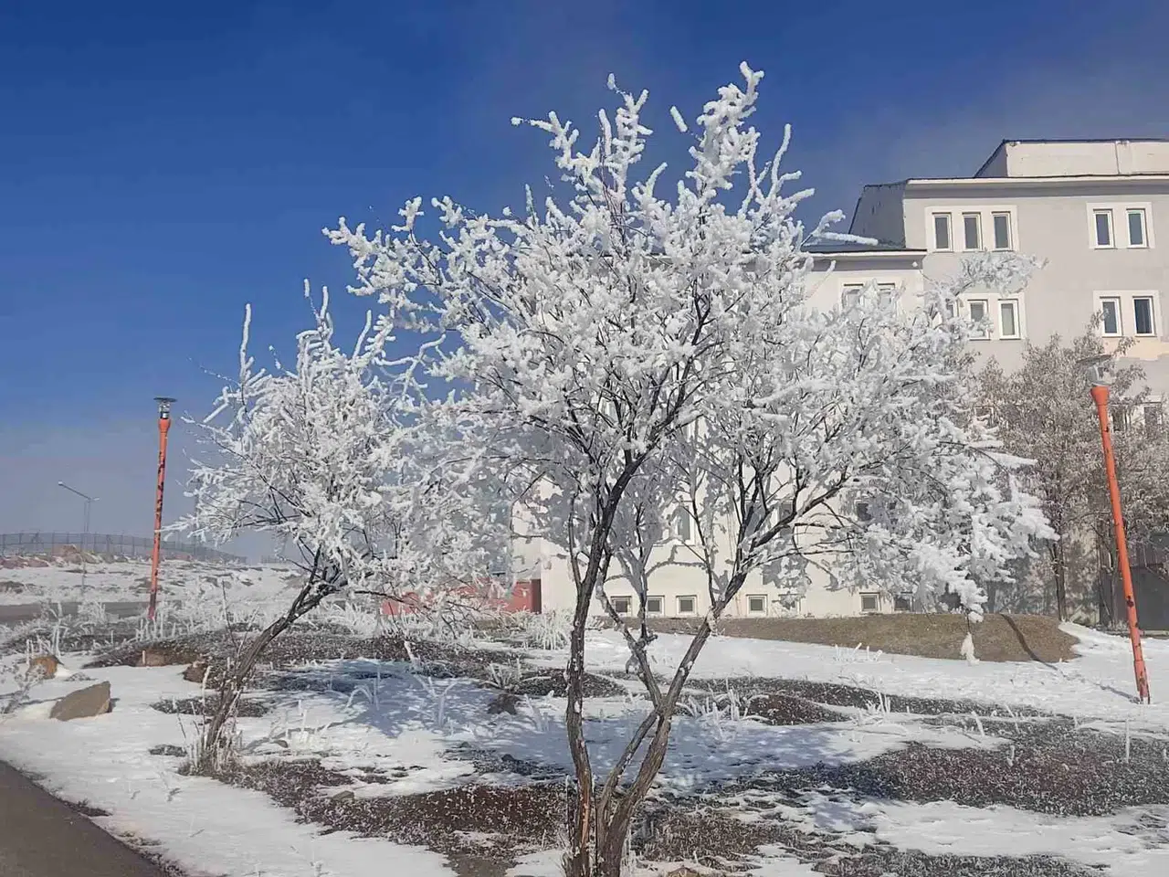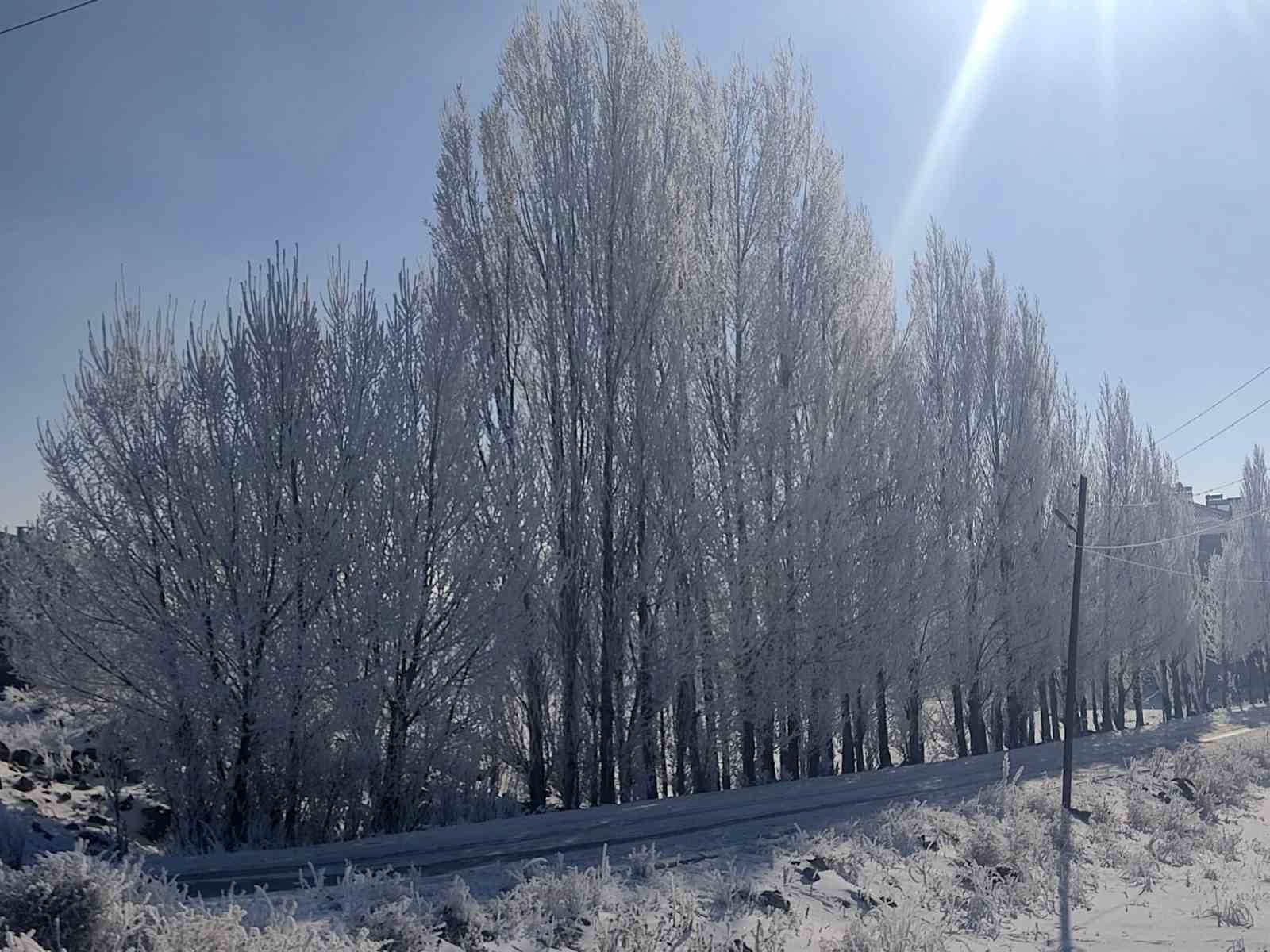 Doğu Anadolu Bölgesi’nde dondurucu soğuklar etkisini sürdürürken, Türkiye’nin en soğuk yerleşim yerlerinden biri olan Çaldıran ilçesinde gece eksi 12 dereceye kadar düşen hava sıcaklığı nedeniyle ağaçların dalları buz tuttu. Denizden 2 bin 50 metre yükseklikteki ilçede soğuk hava nedeniyle ağaçlar kırağı, akarsu ve dereler buz kesti.