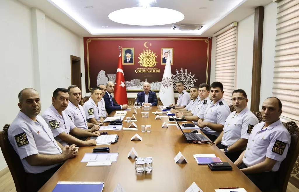 Çorum’da görevine yeni başlayan Vali Ali Çalgan, İl Jandarma Komutanlığı ile Emniyet Müdürlüğü yetkililerinden kentin asayiş durumu hakkında brifing aldı.
