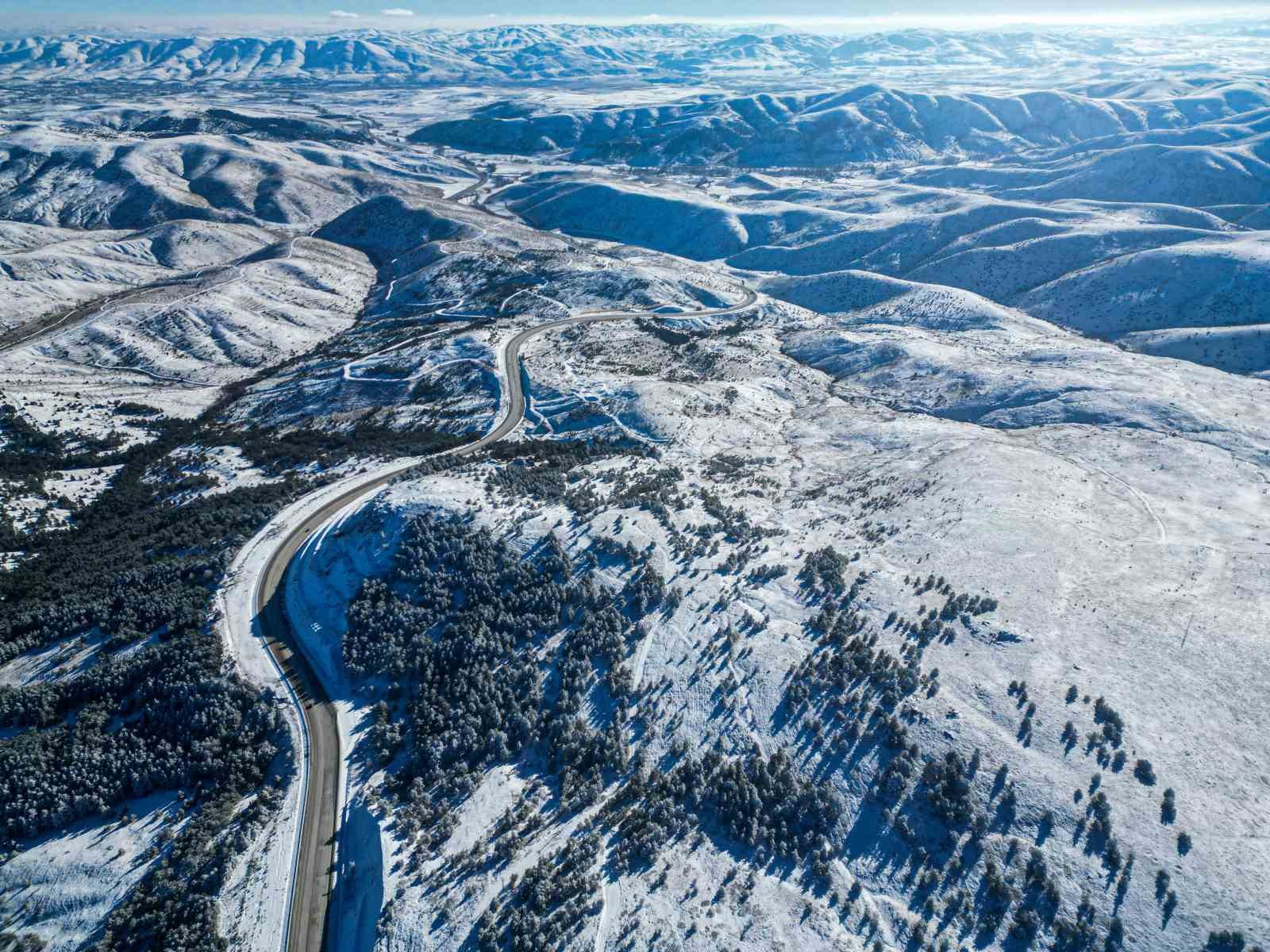 Tokat-Sivas sınırı arasında bulunan bin 650 rakımlı Çamlıbel Geçidi’nde kar yağışı etkili oldu. Beyaz gelinliğini giyen Çamlıbel, görsel şölen oluşturdu.
