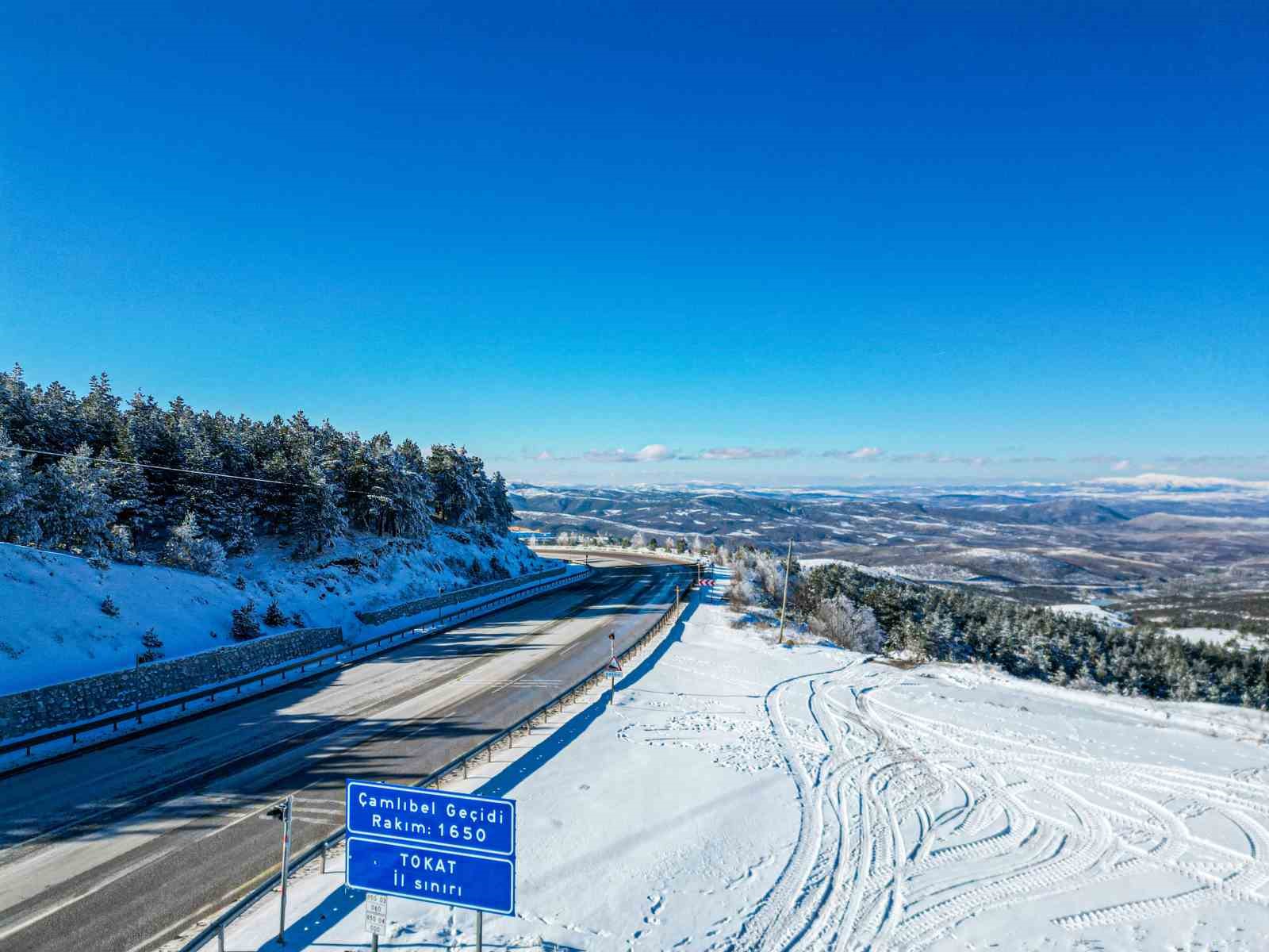 Tokat ve Sivas il sınırını belirleyen Çamlıbel Geçidi’nde kar yağışı etkili oldu. Bin 650 rakımlı Çamlıbel Geçidi’nde gece saatlerinde başlayan kar yağışı, sabaha kadar etkisini sürdürdü. Karayolları ekipleri gece boyunca karla mücadele çalışmalarını sürdürdü. Yol üzerindeki karların temizlemesiyle ulaşım kolaylaştı. 20 santimetre kar yağan geçitte kartpostallık görüntüler oluştu. Beyaz gelinliğini giyen geçit, sürücülere görsel şölen oluşturdu.