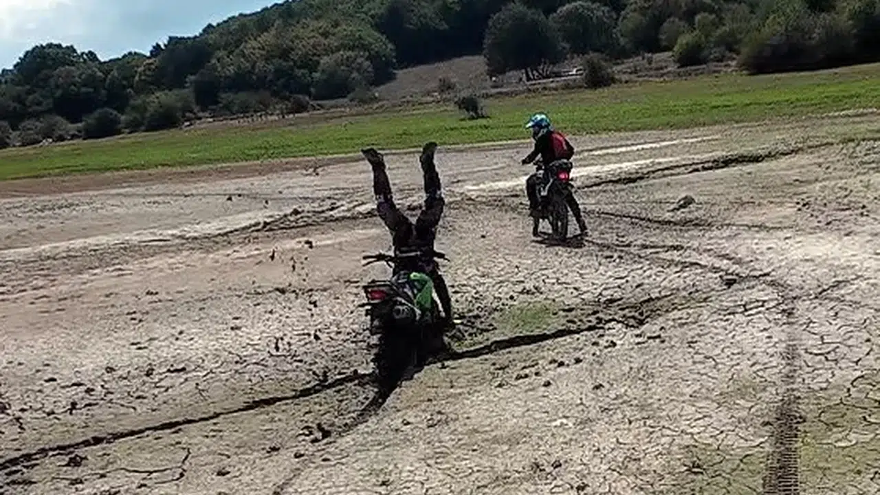 Bolu’da her hafta sonu arazi motosikletleriyle gezen 3 maceraperest Ersin Kaykusuz, Tanay Tanyar ve Suat Demirel’in durağı Gölköy Baraj Gölü oldu. Dik yamaçlarda ve toprak arazilerde macera dolu anlar yaşayan 3 arkadaş, göl kıyısında da tura çıktı. Gölün çekildiği bir noktada oluşan çamur yığını fark etmeyen sürücü Tanay Tanyar, motosikletinin çamura saplanması sonucu takla attı. Sürücünün o anları kask kamerasına saniye saniye yansıdı. Arkadaşlarının düştüğü gören diğer sürücüler yaralanmadığını görünce kahkahaya boğuldu. Çamura saplanan motoru 3 arkadaşın dakikalarca uğraşıp güçlükle çıkardığı anlar da kameraya yansıdı.