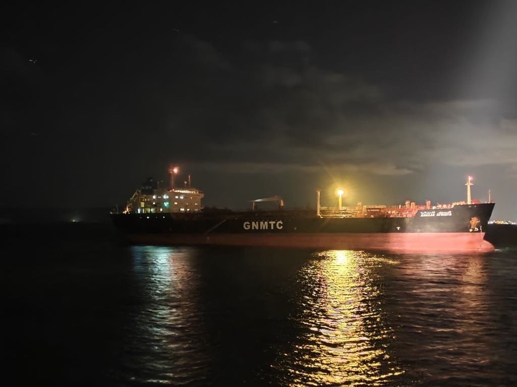 Tanker, kılavuz kaptan ve römorkör refakatinde Karanlık Liman demir sahasına götürülerek demirletildi.
