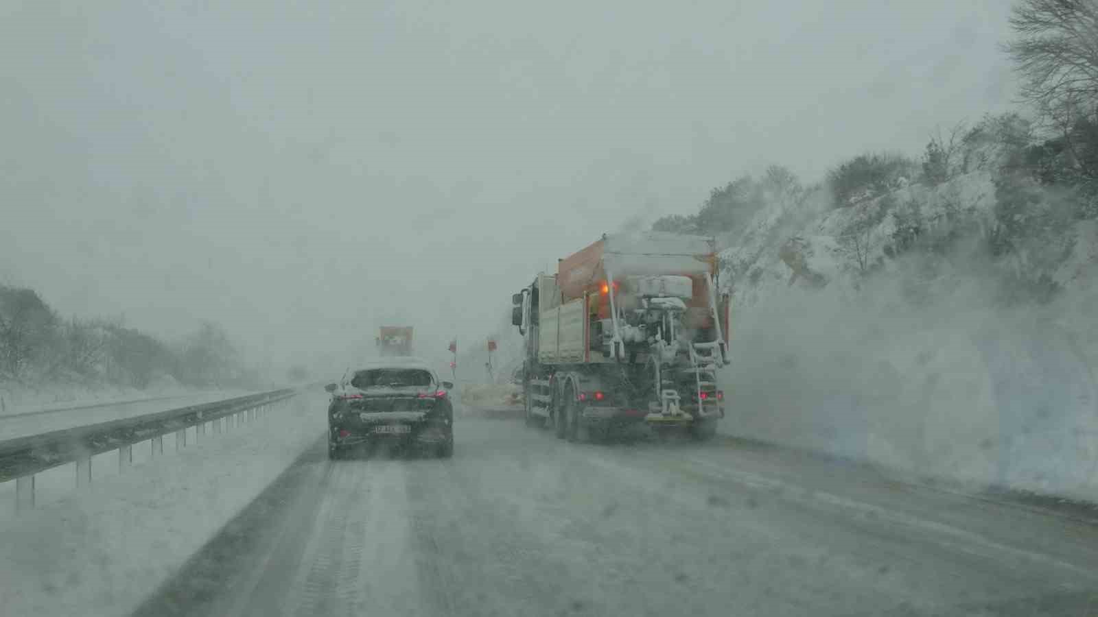 Fırtınayla birlikte tipi şeklinde yağan kar yağışı nedeniyle Çanakkale-Biga karayolu ulaşıma kapandı. Karayolları ekipleri kar küreme ve tuzlama çalışması yapıyor.