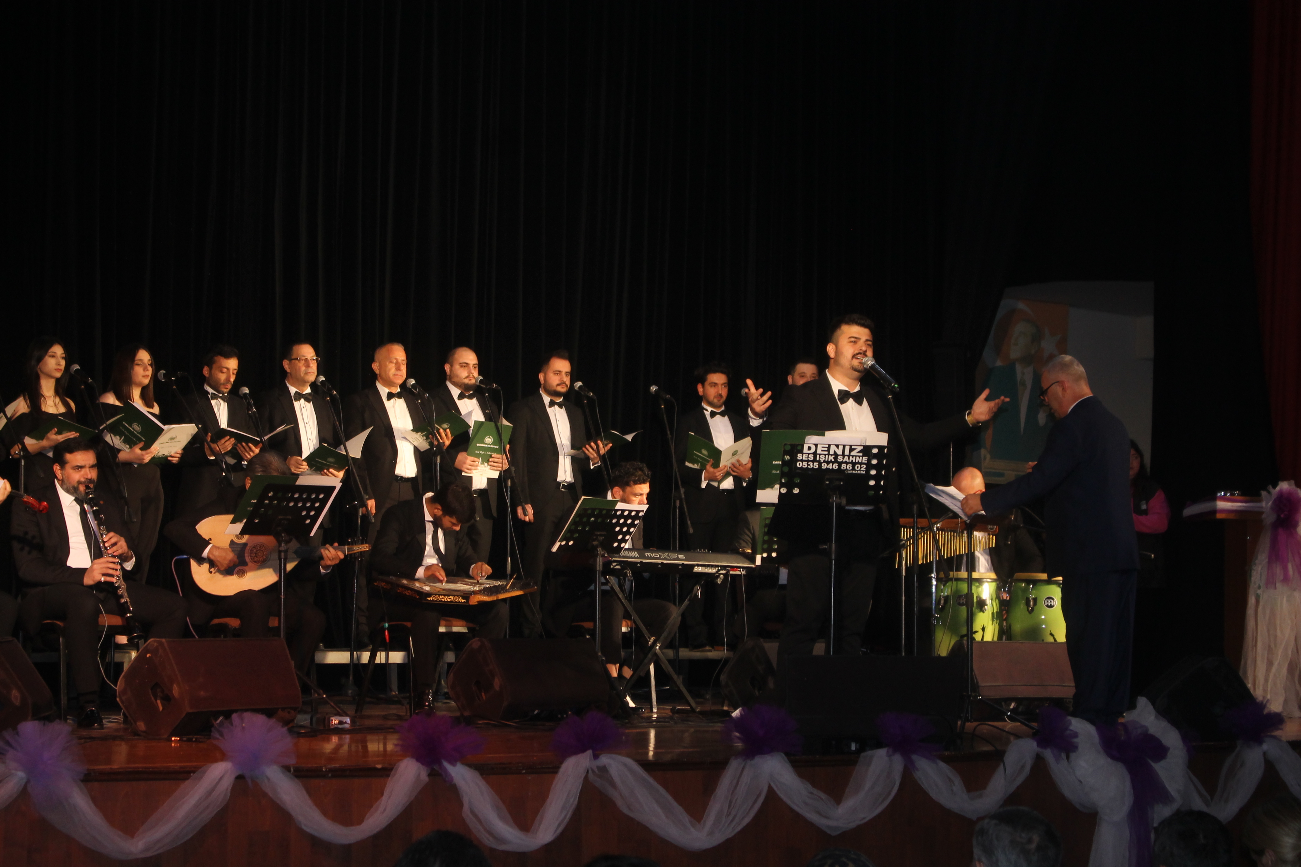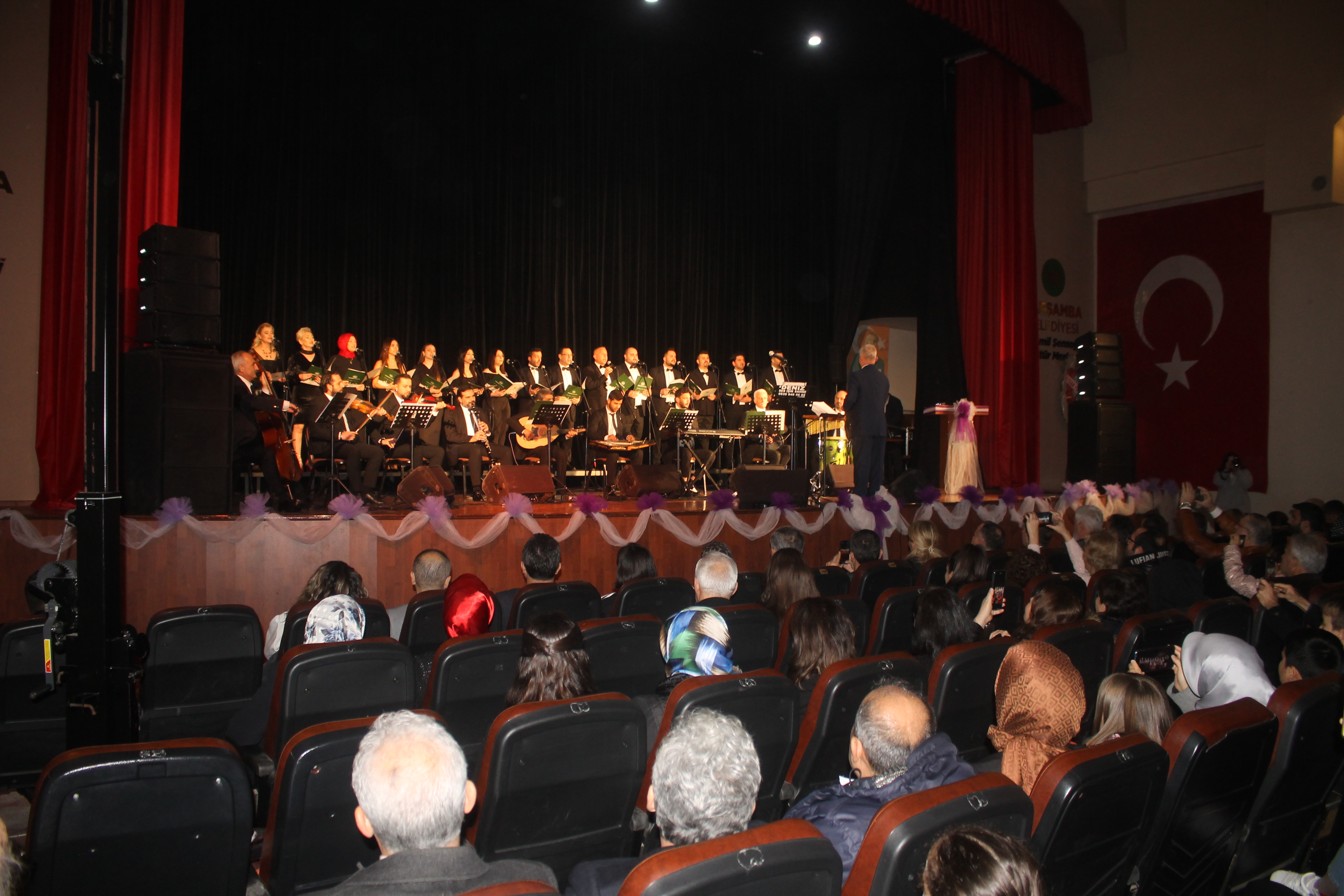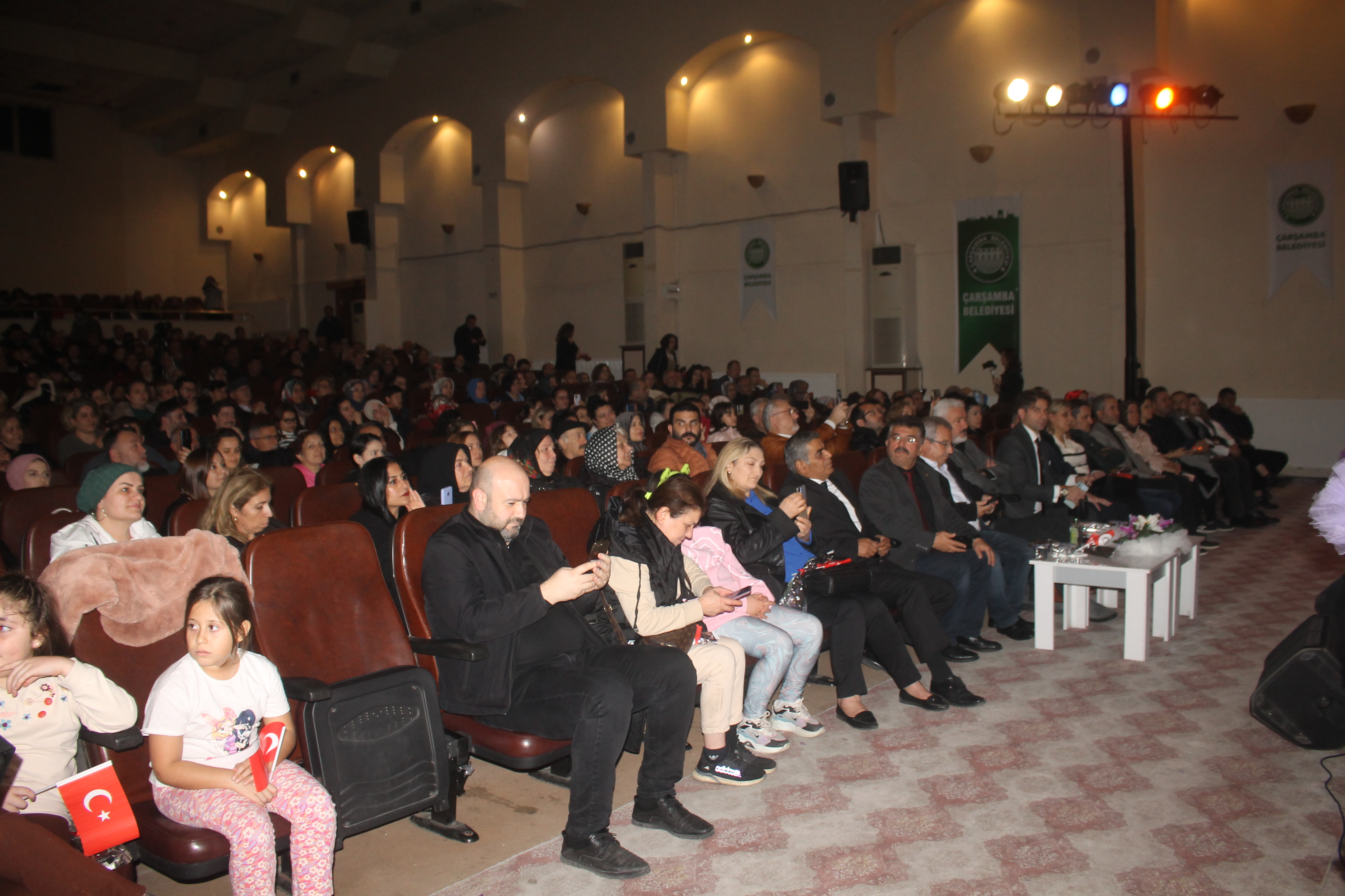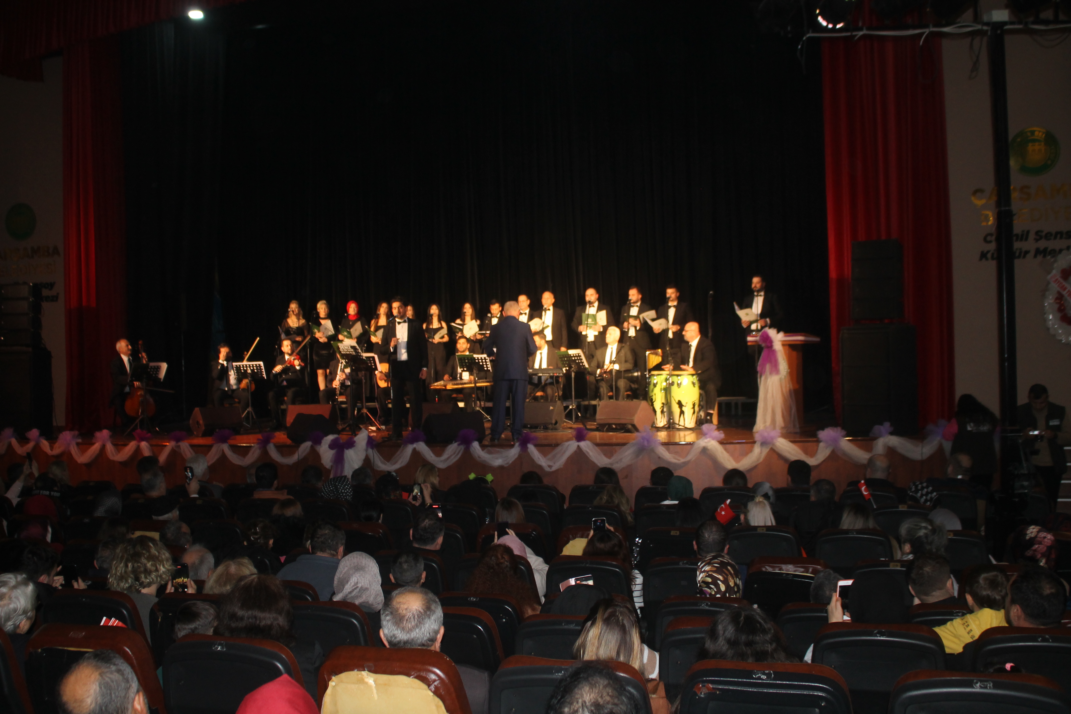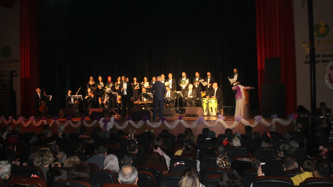 Çarşamba Cemil Şensoy Kültür Merkezi'nde düzenlenen konserde, Kaymakam Şükrü Yıldırım, Çarşamba Belediye Başkan Yardımcısı Ümit Kavraz, İlçe Milli Eğitim Müdürü Mustafa Özdemir, okul müdürleri, öğretmenler ve çok sayıda vatandaş Çarşamba Belediyesi Sanat Topluluğu'nun seslendirdiği şarkılarla keyifli dakikalar geçirdi.