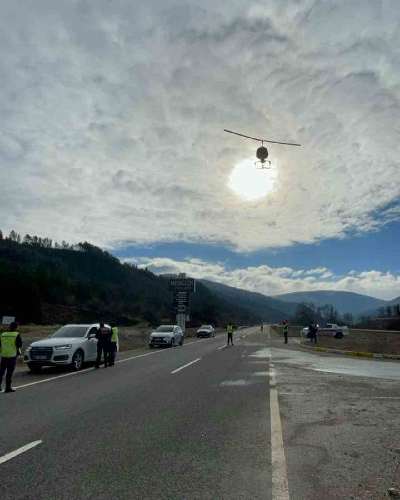 Edinilen bilgiye göre, İl Jandarma Komutanlığı’na bağlı Trafik Şube ve Asayiş Şube Müdürlüğü ekipleri Mengen ilçesi sınırlarında bulunan D-750 kara yolunda trafik denetimi gerçekleştirdi. Ankara ile Zonguldak’ı birbirine bağlayan yolda, cayrokopter destekli geniş çerçeveli uygulama yapıldı. Yüksek teknolojiye sahip hava aracı cayrokopterde bulunan kamera sistemi tarafından D-750 kara yolunda seyreden, emniyet kemeri takmayan, cep telefonu ile araç kullanan ve trafik işaret levhalarına uymayan sürücüler tespit edildi.
