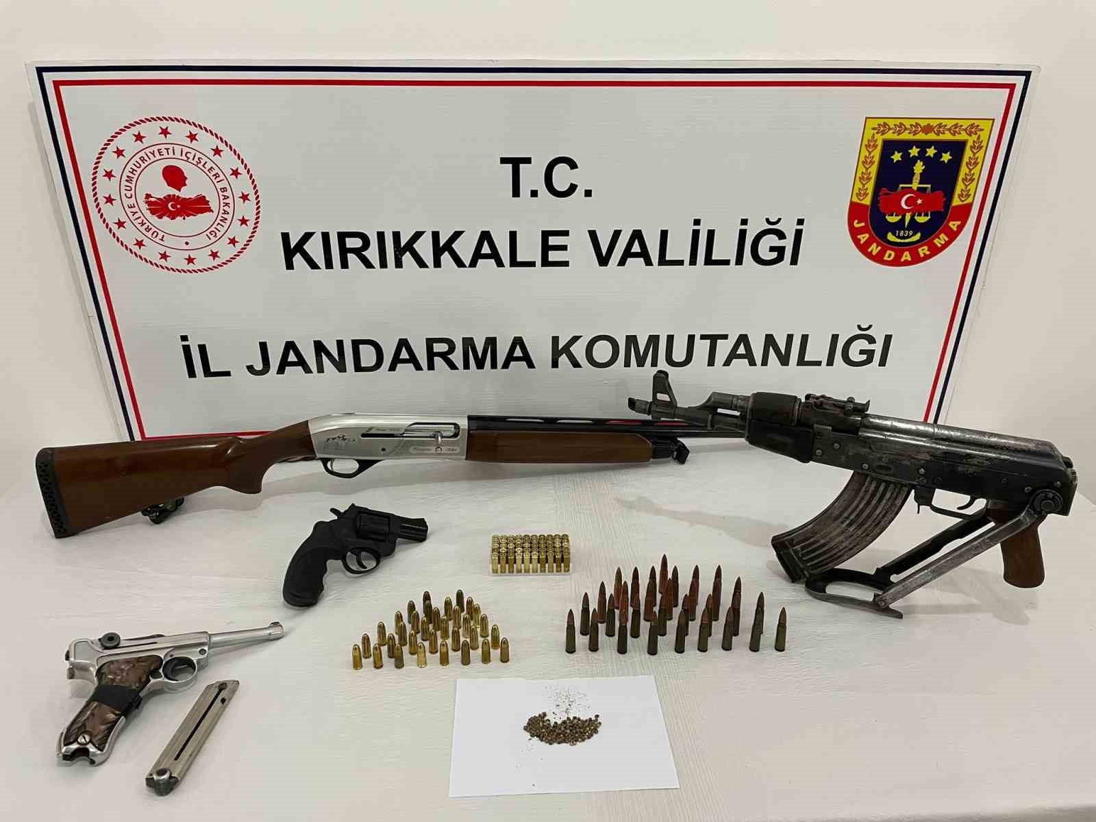 Kırıkkale Cumhuriyet Başsavcılığı koordinesinde İl Jandarma Komutanlığı ekiplerince, Balışeyh ilçesindeki bir köyde Y.Ö. isimli şahsın evine operasyon düzenlendi. Cumhuriyet Savcılığından alınan izinle yapılan aramada, samanların arasında poşet ve bezlere sarılı halde seyyar dipçikli kaleşnikof ve ruhsatsız tabanca ile evin bazı bölümlerinde ruhsatsız av tüfeği ile tabanca ele geçirildi. Gözaltına alınan Y.Ö., jandarmadaki işlemlerinin ardından sevk edildiği adliyede tutuklandı.