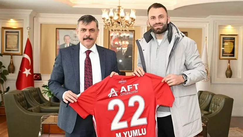 Erzurumspor kaptanı Mustafa Yumlu, kulübü adına yaptığı ziyarette valiye 22 numaralı forma hediye etti