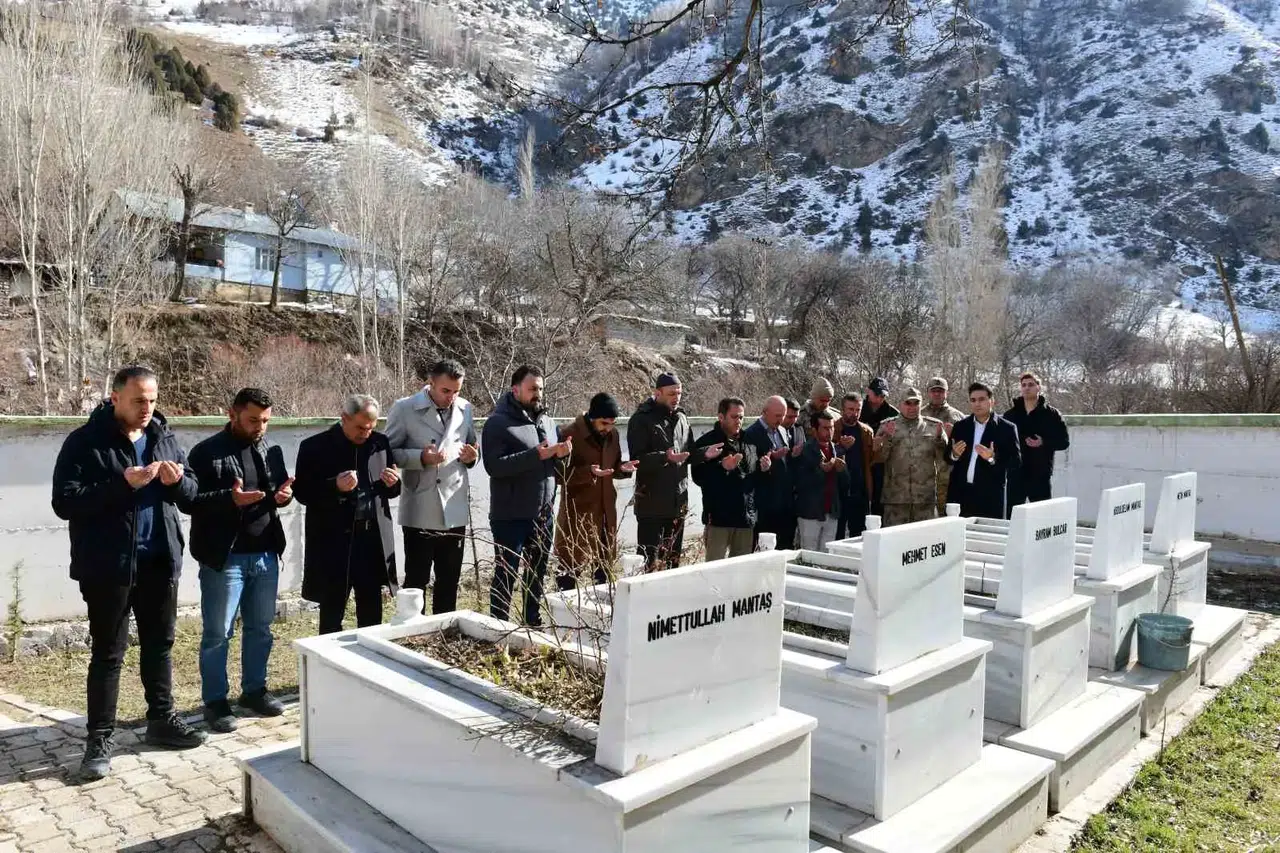 Bahçesaray yolundaki 3 bin rakımlı Karabet Geçidi’nde 4-5 Şubat 2020 tarihlerinde gerçekleşen ve 11 askerle birlikte toplamda 42 kişinin şehit olduğu çığ faciasının acısı, aradan geçen 5 yıla rağmen taze kalmaya devam ediyor. Anma programları kapsamında şehit güvenlik korucularının kabirlerinin bulunduğu Çatak ilçesine bağlı Alacayer Mahallesi Çemik mezrasında bir araya gelindi. Burada İlçe Kaymakamı Kadir Kılıç, İlçe Jandarma Komutanı Yarbay Gülali Çendik, Komando Tabur Komutanı Ömer Kaplan, İlçe Emniyet Amir Vekili Oğuzhan Güzelişler, AK Parti İlçe Başkanı Fazıl Babur ve şehit yakınları dualar etti. Kaymakam Kılıç ve beraberindekiler, anma programının ardından şehit ailelerini de ziyaret etti.