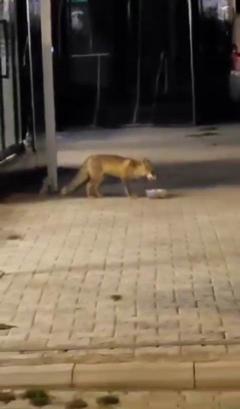 Elazığ’da bir tilki, her gün akşam saatlerinde geldiği ciğerci dükkanının önünde karnını doyurup doğal ortamına geri dönüyor.