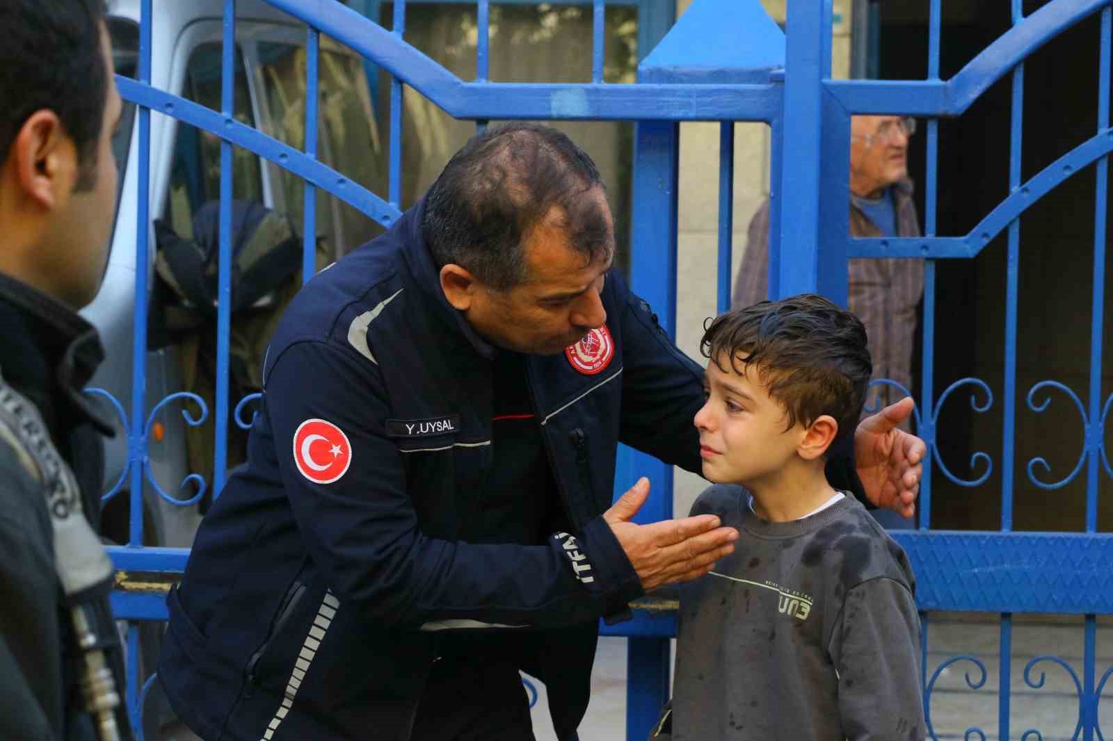 Küçük çocuğu itfaiye erleri sakinleştirdi