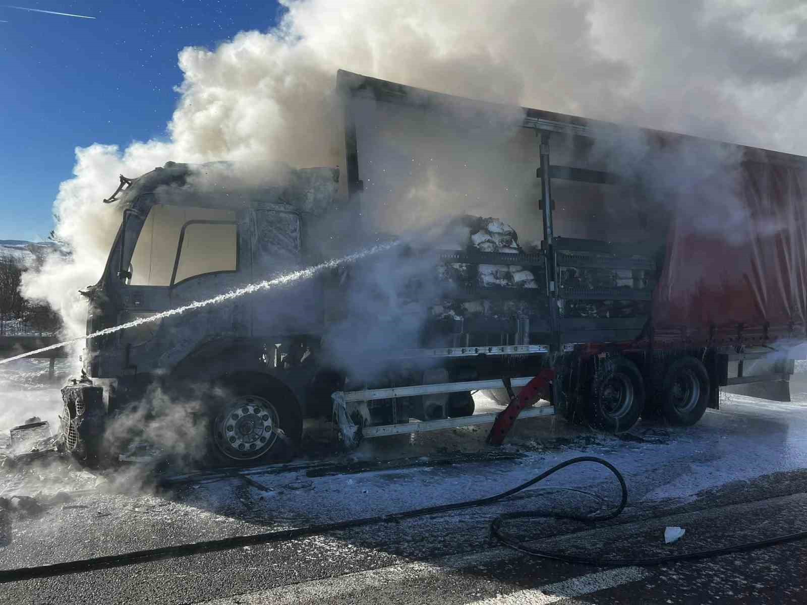 Yangın nedeniyle kamyon kullanılamaz hale geldi.