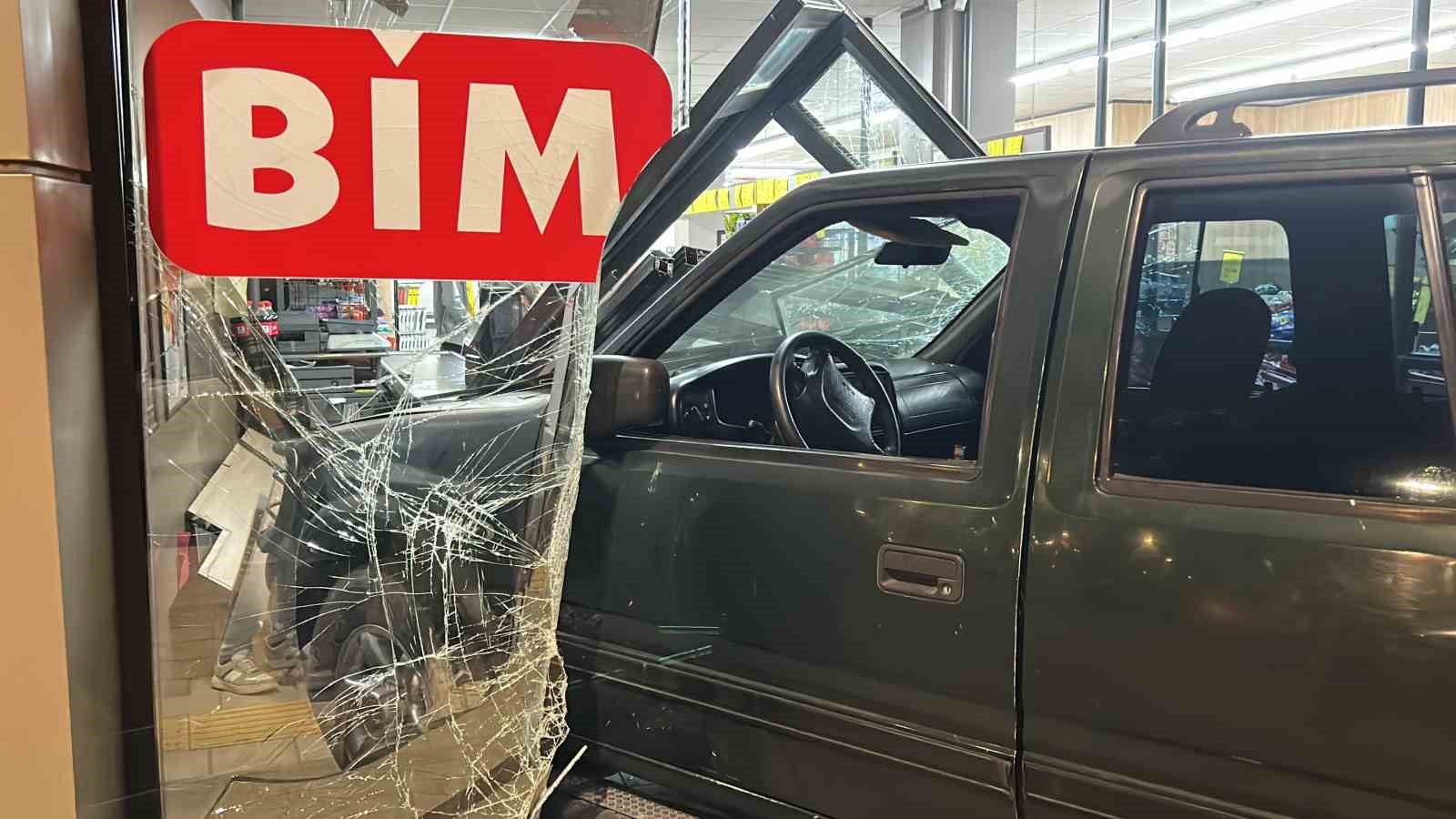 Sivas’ta sürücüsünün direksiyon hakimiyetini kaybettiği cip, marketin vitrininden içeri girdi.