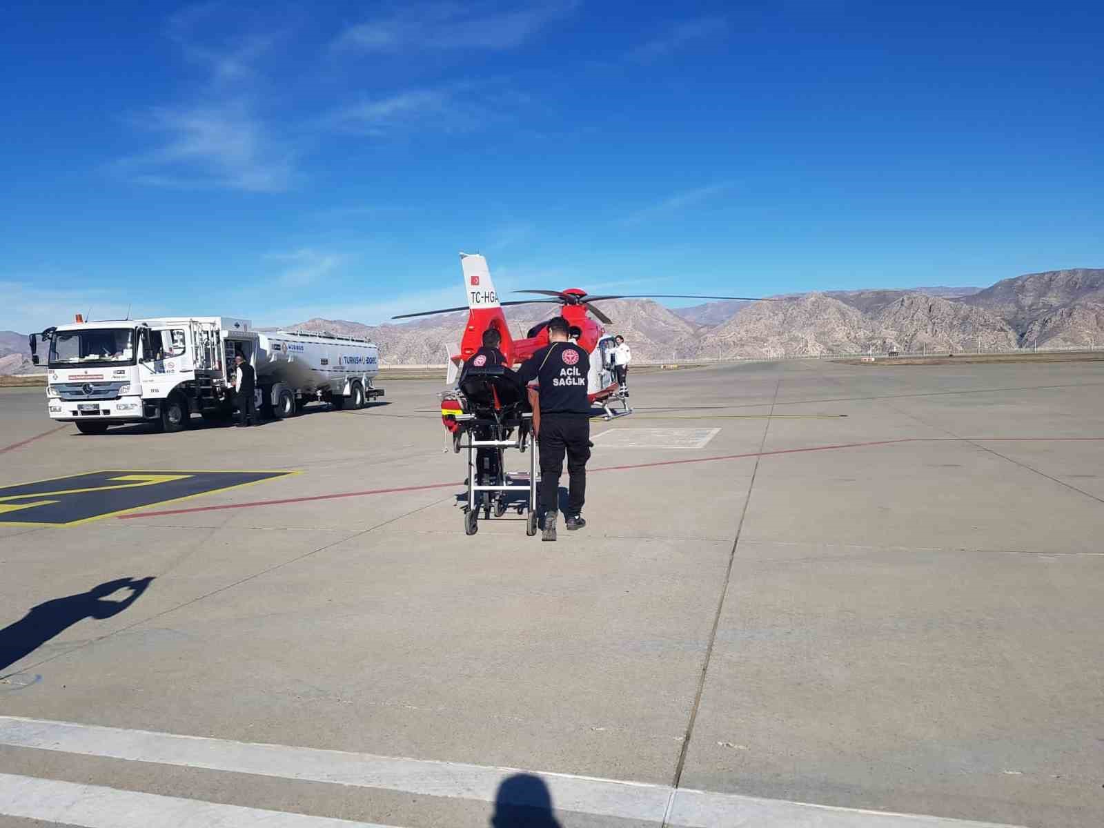 Ambulans ile Şırnak Şerafettin Elçi Havalimanı’na getirilen Güneş, ambulans helikopter ile Elazığ Eğitim ve Araştırma Hastanesi’ne sevk edildi.