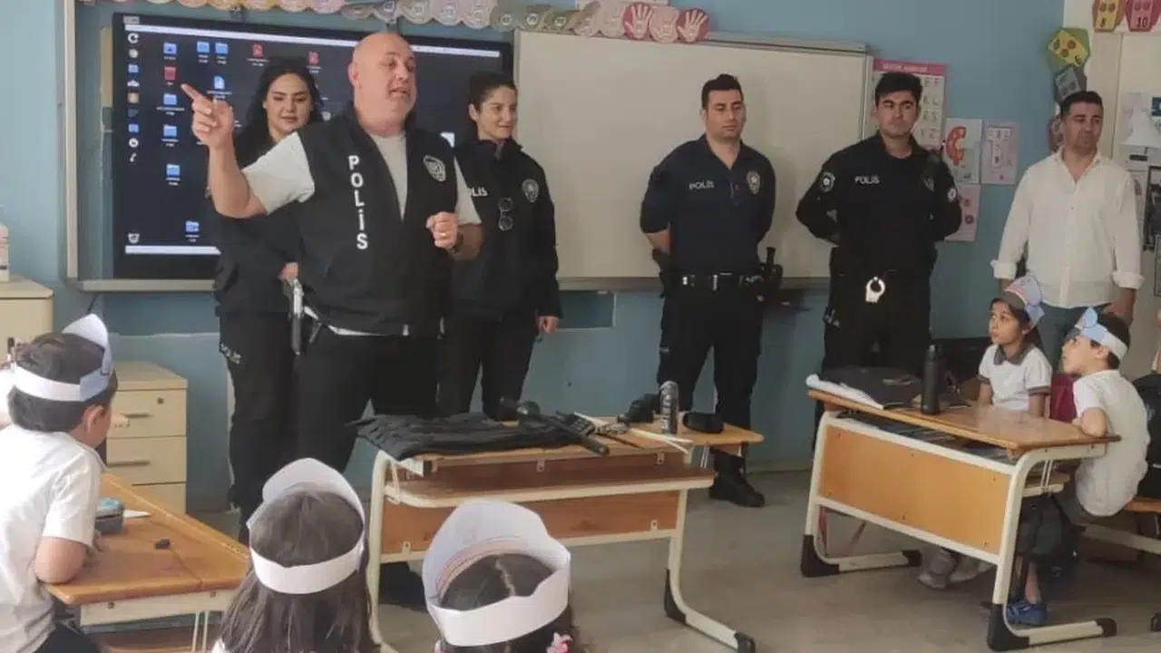 İzmir’in Bayraklı ilçesinde polis ekipleri, ilkokul 1’inci sınıf öğrencilerine polislik mesleğini anlatarak mesleği sevdirdi.