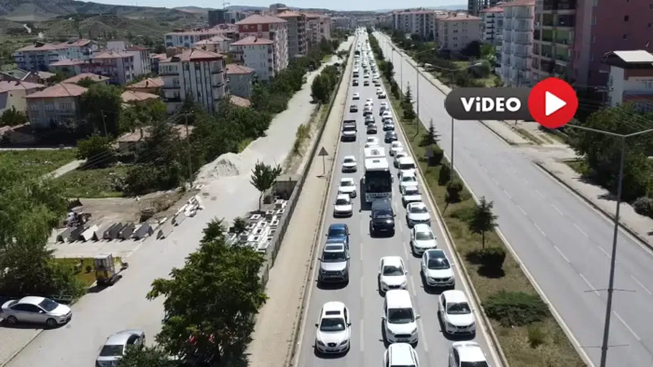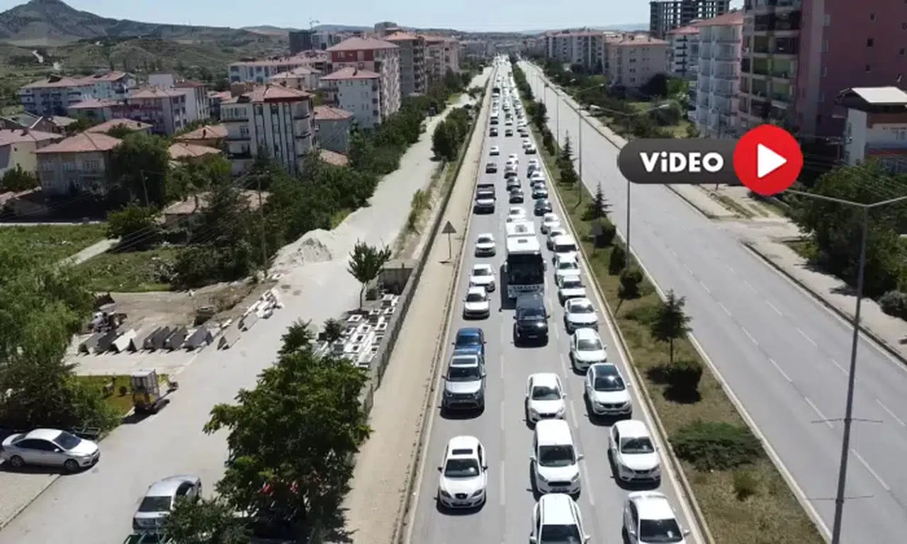 Çorum-Ankara karayolunda Kurban Bayramı nedeniyle oluşan yoğunluk drone ile görüntülendi.