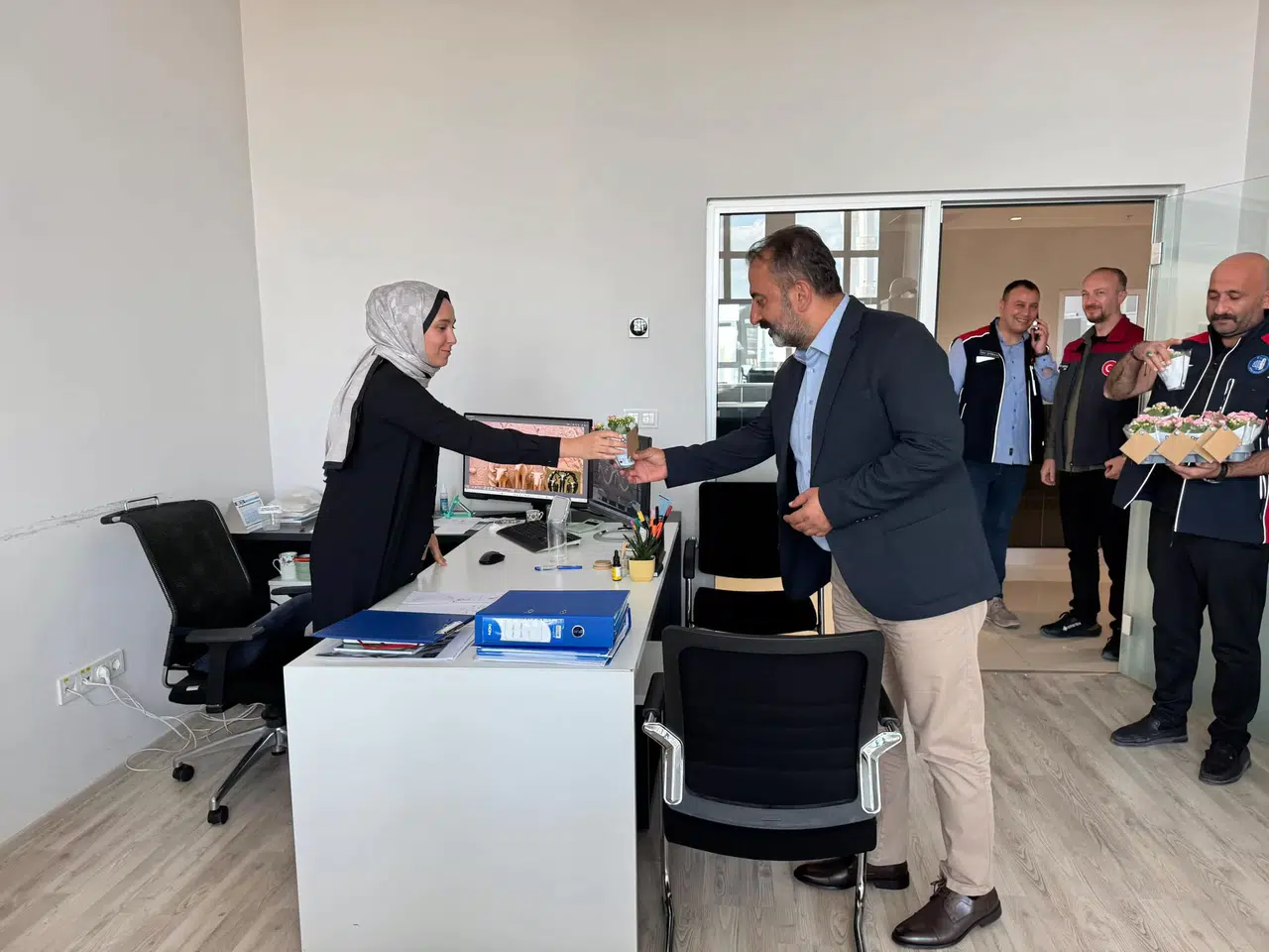 Çorum Belediyesi, mimarlar ile bir araya geldi. 7 Ekim Dünya Mimarlık Günü nedeni ile belediye bünyesindeki mimarlar ve Mimarlar Odası ile bir araya gelen Çorum Belediye Başkan Yardımcısı İsmail Yağbat, mimarların gününü kutlayarak çiçek hediye etti.