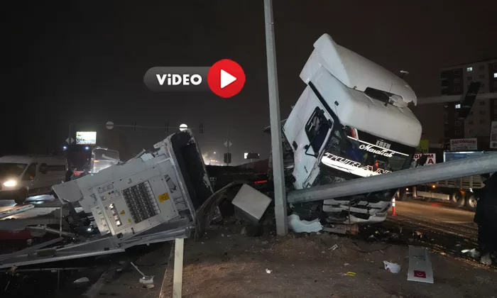 Çorum-Kırıkkale karayolunda kontrolden çıkan trafo yüklü tırın aydınlatma direğine çarptığı kaza anı güvenlik kamerasına yansıdı. Kazada, hurdaya dönen tırdaki baba ve oğul yaralandı.
