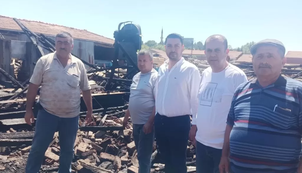 CHP Merkez İlçe Başkanı Av. Utku Ulaş Taşar ve Belediye Meclis Üyesi Tuncay Yılmaz, yangının ardından Yücel Şahin’e geçmiş olsun ziyaretinde bulunarak olay yerinde inceleme yaptı.