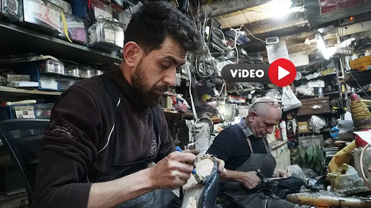 Çorum'un Osmancık ilçesinde yaşayan ayakkabı tamir ustası Şuayip Ekinci ile tekstil, giyim, ayakkabı ve deri bölümü mezunu oğlu, 80 yılı aşan aile mesleklerini birlikte sürdürüyor.