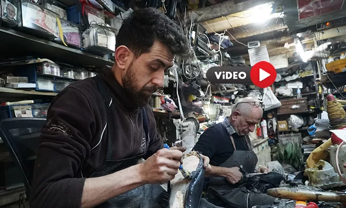 Alaylı ayakkabı tamircisi ile okullu oğlu, yaklaşık 25 yıldır aynı dükkanda her gün onlarca ayakkabıyı onarıyor.