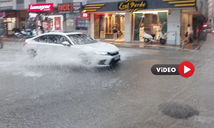 Yaklaşık 45 dakika hızla yağan yağmurda İnönü ve Gazi Caddeleri, göle döndü, araçlar ilerlemekte güçlük çekti.