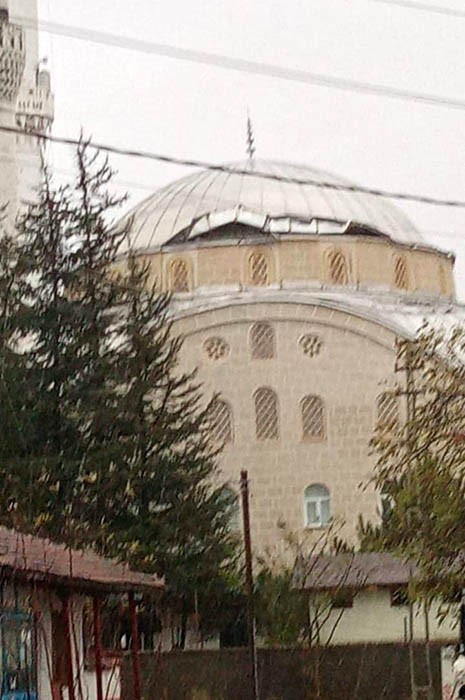 Çorum’da Fırtına, Cami Kubbesine Zarar Verdi, Otobüs Durağını Uçurdu