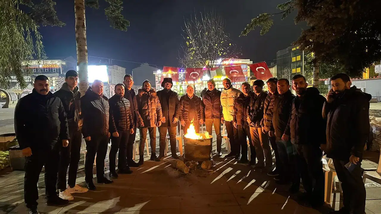 Akşam saatlerinde KADEŞ Barış Meydanı’nda toplanan ocak üyeleri, ateş etrafında Filistin’deki zulme dikkat çekmek için nöbet tuttu.