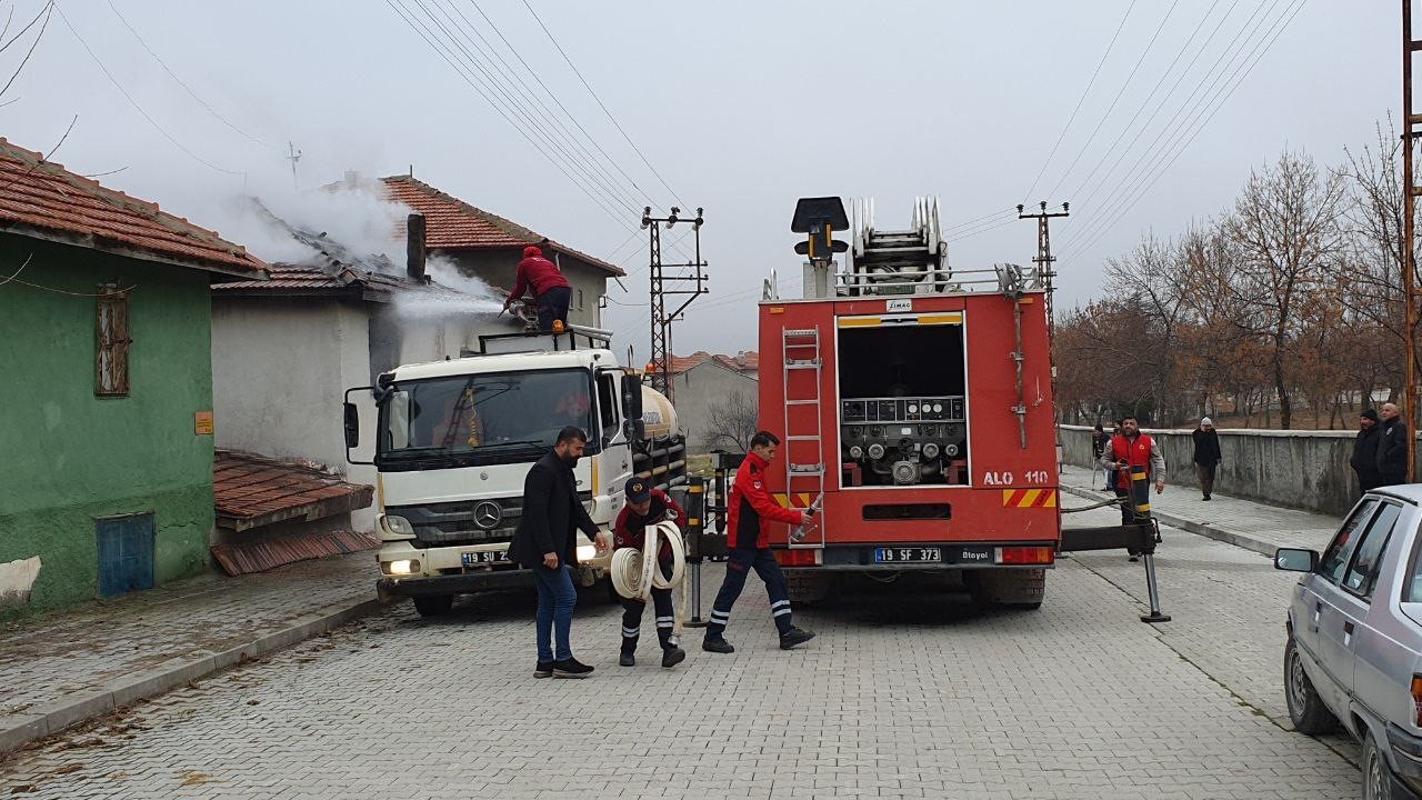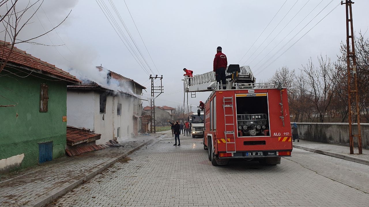 Çorum’da İki Katlı Ev Kül Oldu