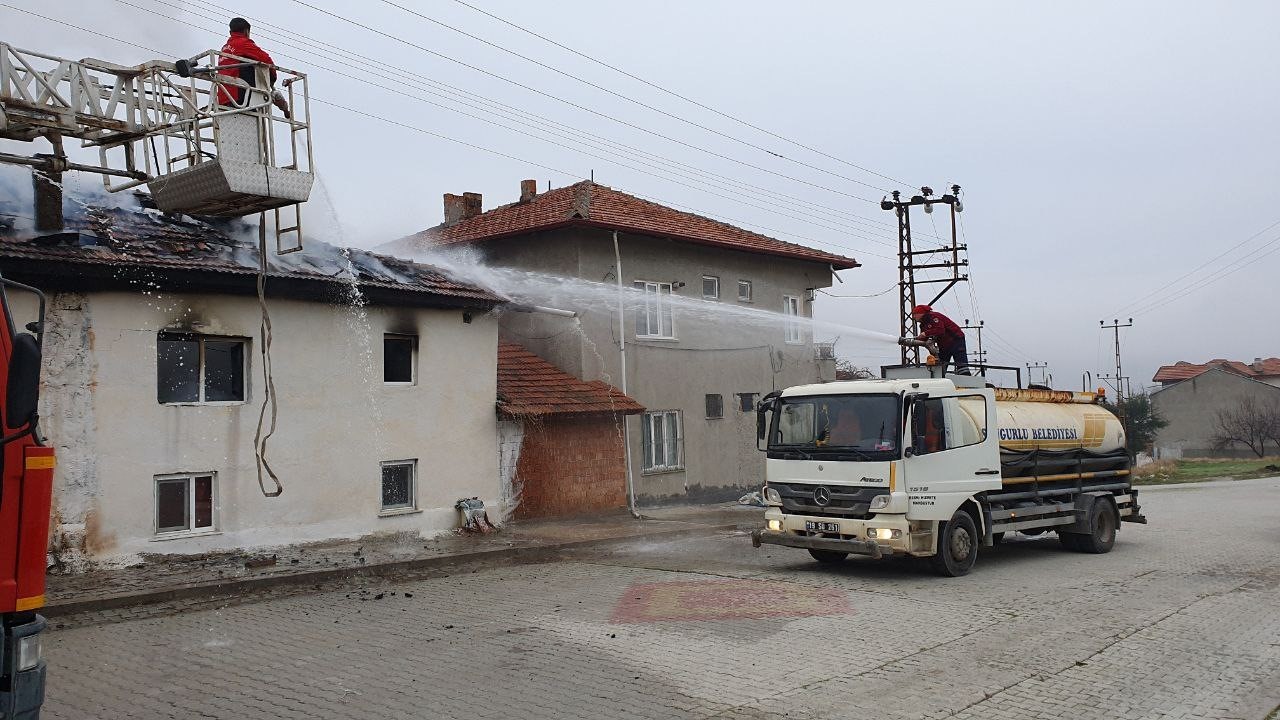 Çorum’un Sungurlu ilçesinde çıkan yangında iki katlı bir ev kullanılmaz hale geldi.