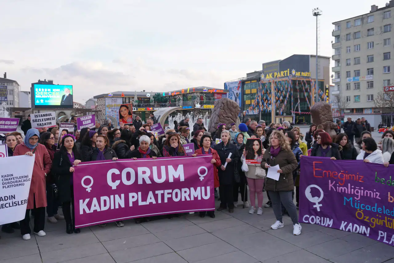 Çorum Kadın Platformu adına konuşan Eylem Kandemir, “İstanbul Sözleşmesi ve 6284 Sayılı Yasa’nın etkin bir şekilde uygulanması için alanlardayız!” ifadesini kullandı.