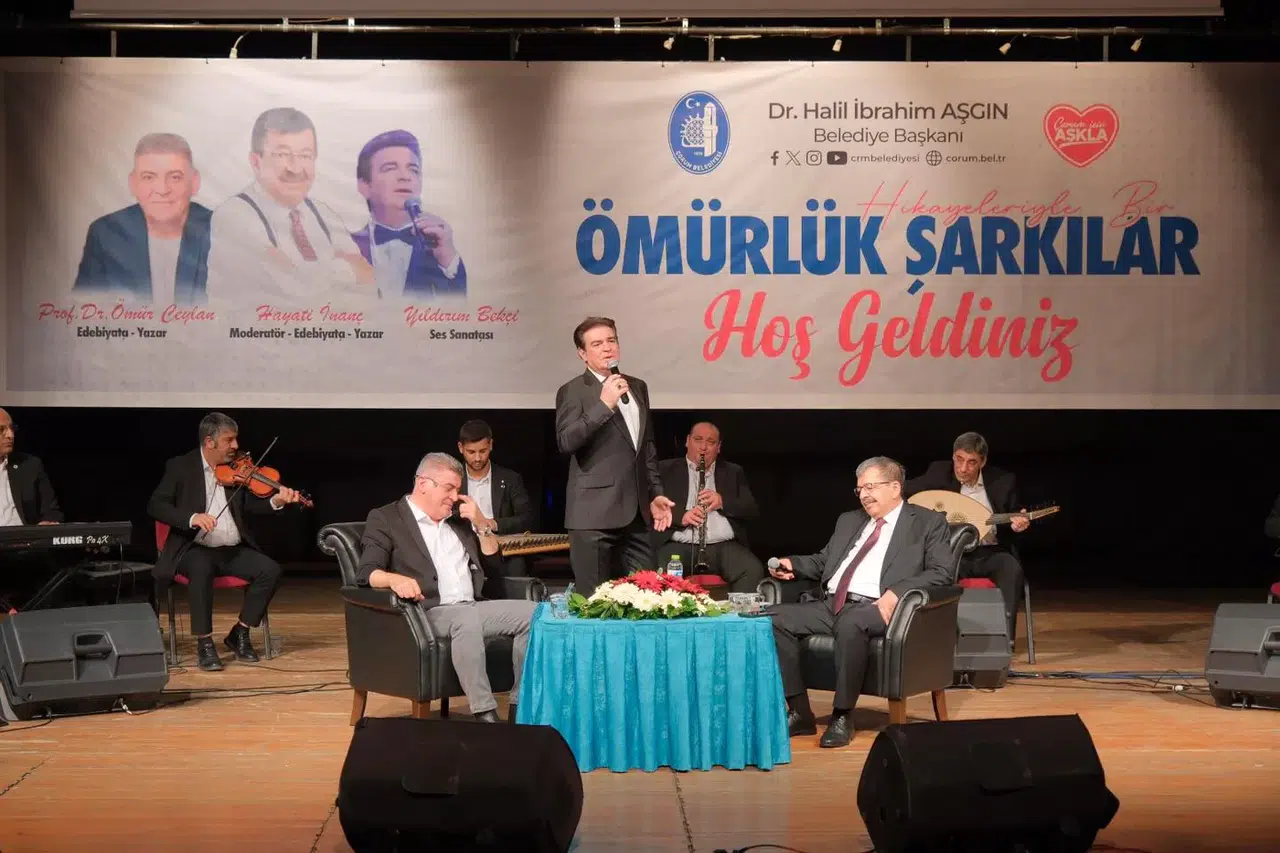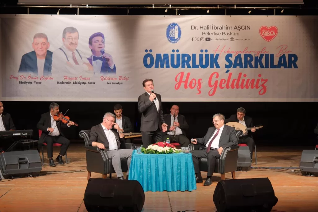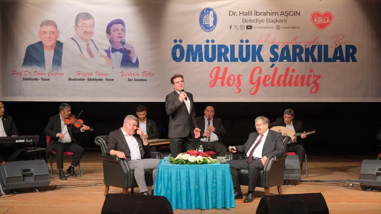 Çorum Belediyesinin kültür sanat etkinlikleri kapsamında düzenlediği “Hikâyeleriyle Bir Ömürlük Şarkılar” programı izleyenlerden tam not aldı.