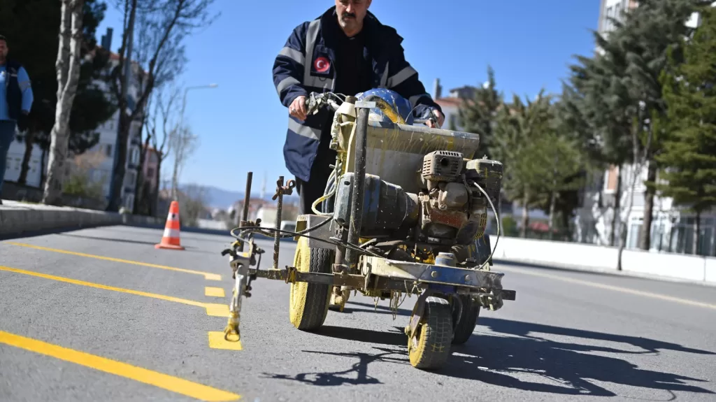 Çorum Belediyesi otobüs duraklarında yol çizgi çalışması yaptığını duyurdu.