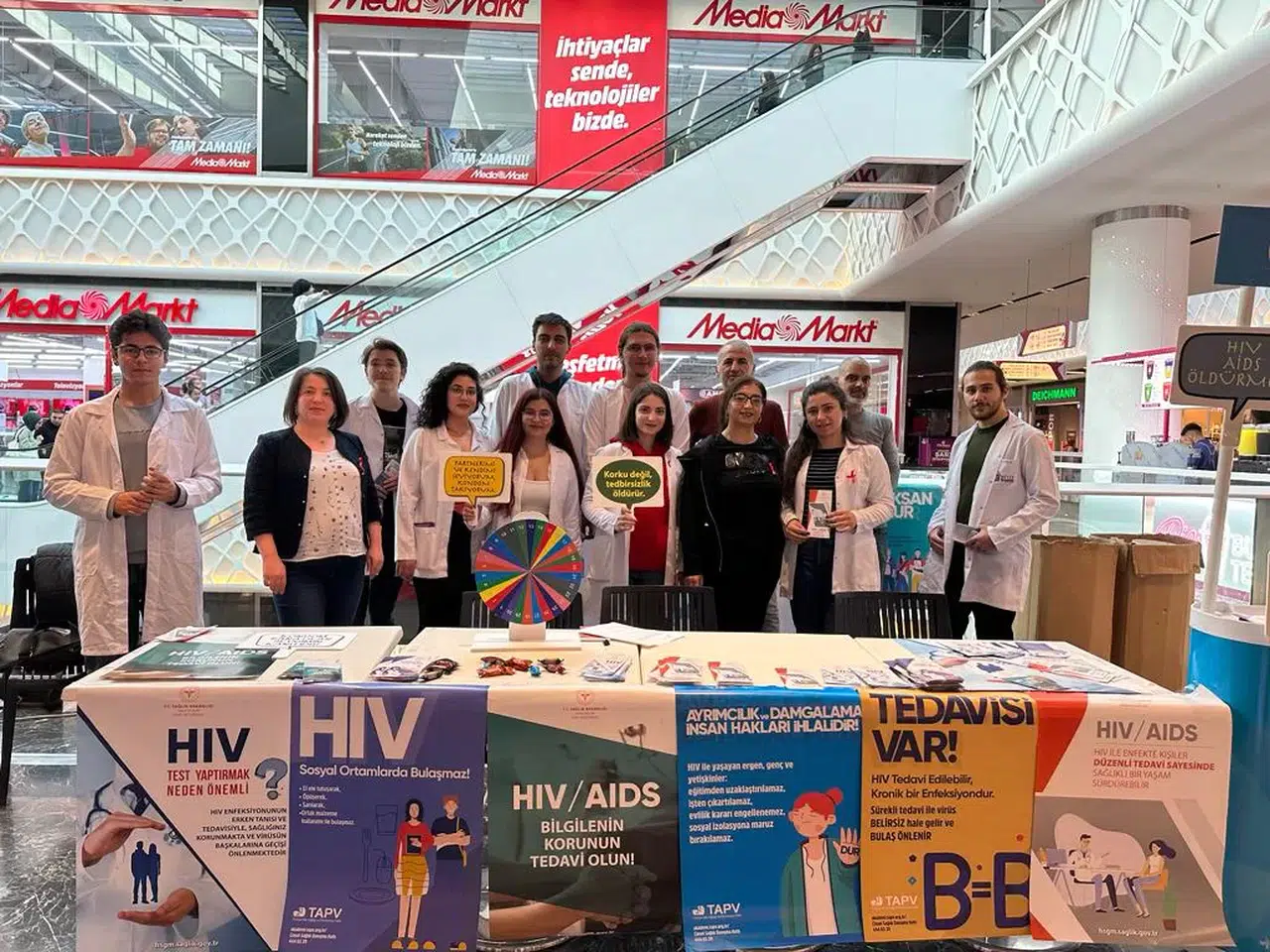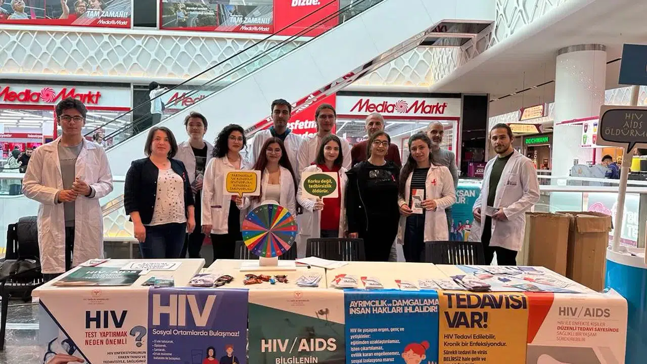 Alışveriş merkezinde açılan stantla vatandaşlara HIV enfeksiyonuyla ilgili bilgilendirmeler yapıldı.