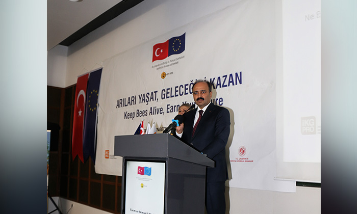 Arcılığın az sermaye ve çok emekle yapılabilecek bir meslek olduğunu vurgulayan Hayrullah Göktekin, “Arıcılık az bir sermaye ve emekle yapılmaya çok uygun bir uğraştır. Arıdan elde edilen bal, balmumu, polen, arı sütü, propolis gibi ürünler ülke ekonomisine önemli girdiler sağlar. Arıcılığın tarım açısından en büyük önemi ise, bitkilerin tozlaşmasında oynadığı roldür. İnsan gıdasının üçte biri doğrudan veya dolaylı olarak arı tarafından tozlaşmaya ihtiyaç duyan bitkilerden oluşur. Türkiye Arıcılık Haritası'nın Tarım ve Orman Bakanlığı web sitesinde bulunun son güncellemesiyle arıcılarımız illerin bal ormanı alanlarından kovan kapasitelerine, arıları hangi dönemde hangi bölgeye götüreceklerine kadar her türlü bilgiye erişebilecekler. İlimizde arıcılığı çok önemsemekteyiz. Bu amaçla 2020 de 1910 adet Polen Tuzaklı Kovan Tabanı Projesi, 2021'de Bal Dolum Ambalajlama ve Paketleme Tesisi Projesi ve 2022' de Polen Tuzaklı Arı Kovanı Alımı Projesi gerçekleştirilmiştir. Bundan sonra da arıcılarımızın ihtiyaç duyduğu konularda benzer projeleri hayata geçireceğiz. Bu aşamada Avrupa Birliği ve Türkiye Cumhuriyeti tarafından finanse edilen ve Tarım ve Orman Bakanlığı Tarım Reformu Genel Müdürlüğü'nün faydalanıcısı olduğu "Nitrat Eylem Planları İzleme ve Raporlama Metodolojisinin Kurulması Yoluyla Suların Tarımsal Kirliliğe Karşı Korunması Projesi-NEPİZ ile Türkiye'de doğal kaynakların ve doğanın korunması, iklim değişikliğinin yarattığı etkilere karşı direncin artırılması üst hedefi doğrultusunda proje kapsamındaki faaliyetlerle, tarımsal kirliliğe karşı su kaynaklarının kalitesinin artırılması amaçlanmaktadır” ifadelerini kullandı.