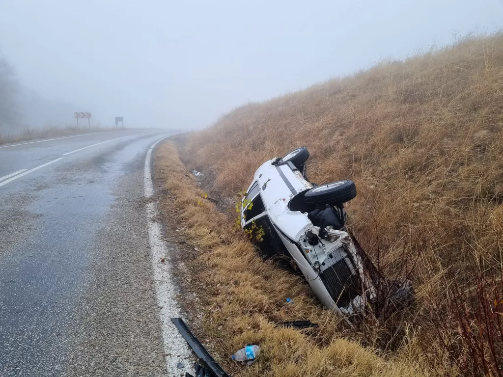 Çorum’un Alaca ilçesinde yoğun siste sürücüsünün kontrolünden çıkan otomobil, takla atarak şarampole devrildi. Kazada 3 kişi yaralandı.