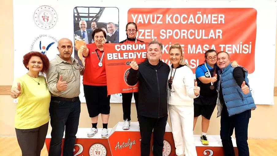 Özel Sporcular Türkiye Masa Tenisi Şampiyonası, 25-26 Kasım tarihleri arasında Antalya’nın Kemer ilçesinde gerçekleştirildi. Şampiyonaya Çorum’dan katılan Çorum Belediyespor kulübü sporcusu Merve Peker Down Sendromlular kategorisinde tüm rakiplerini yenerek şampiyon oldu.