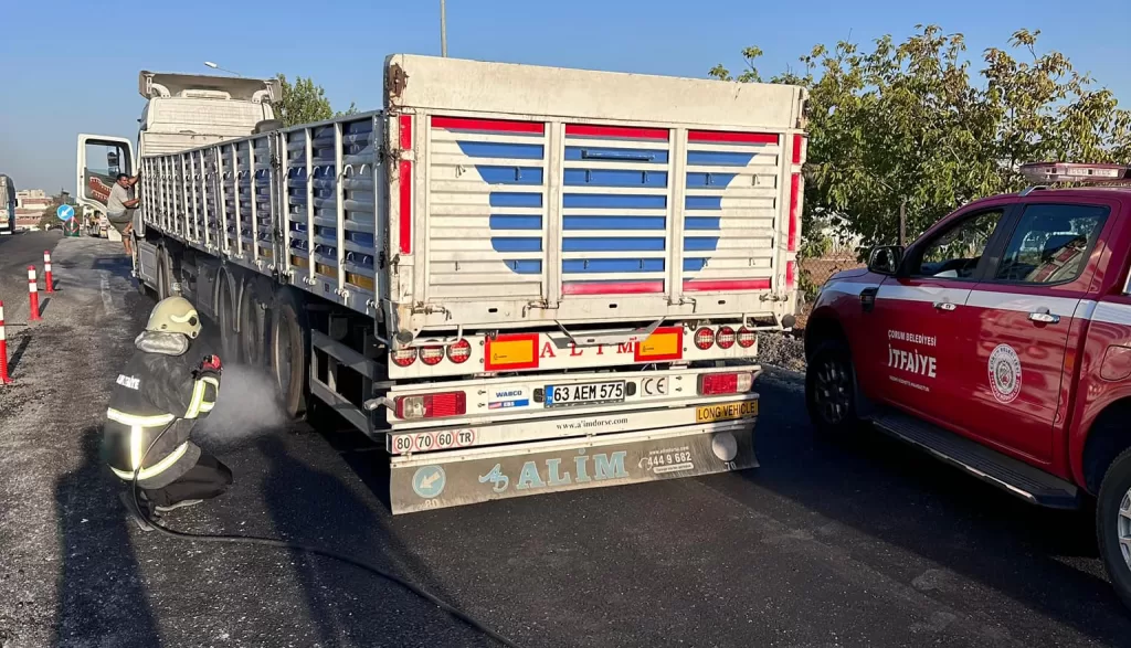 Çorum Belediyesi itfaiye ekipleri, İzmir'deki destek görevlerinden dönerken Uşak yakınlarında bir tıra müdahale ederek büyük bir faciayı önledi.