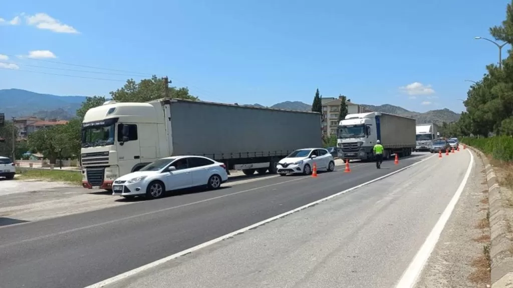 İki şeritli yolun yer yer iki şeridinin de araçlarla kaplandığı görülüyor.