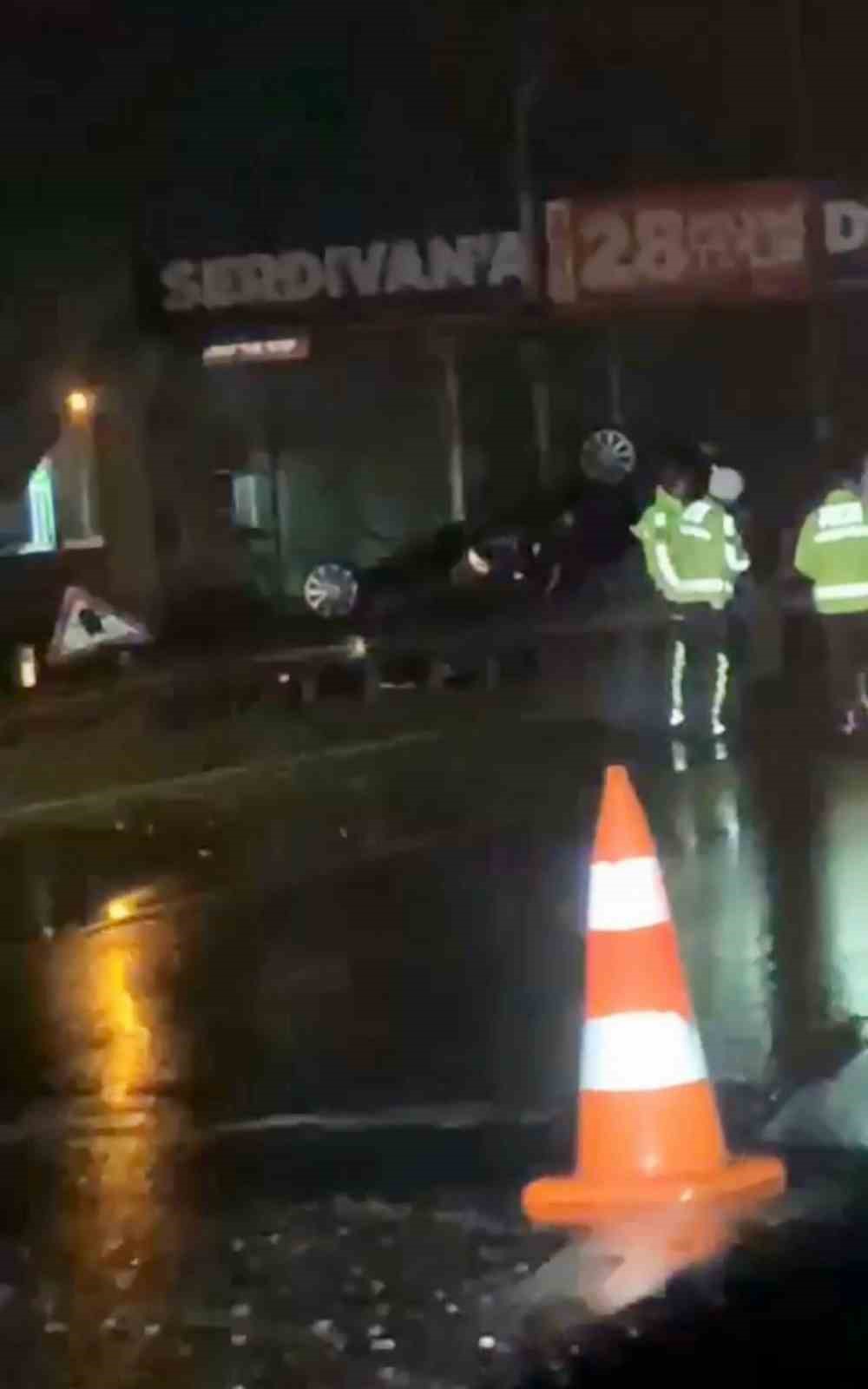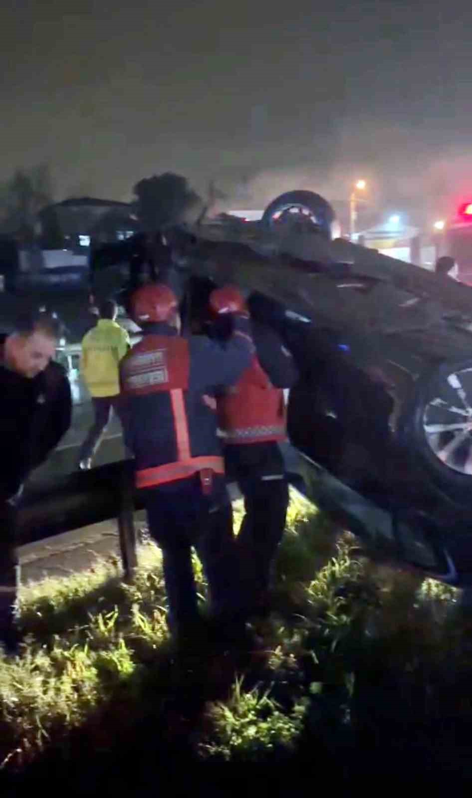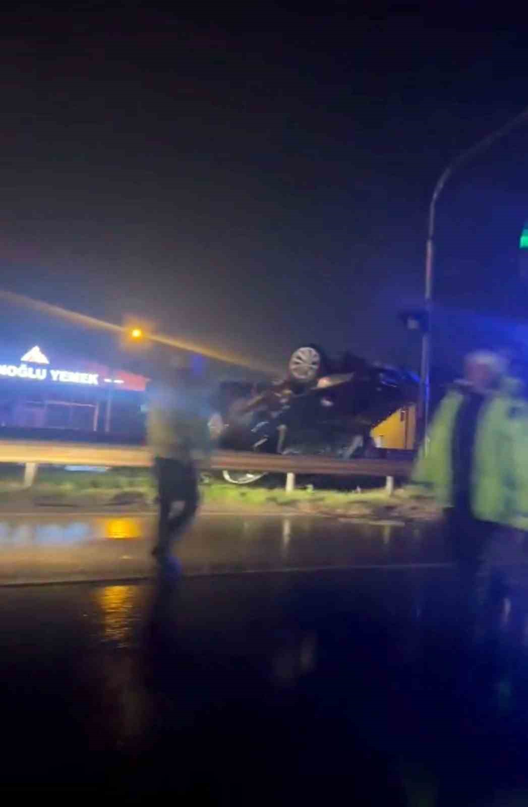 Sakarya’nın Serdivan ilçesi D-100 kara yolunda yağışın da etkisi ile kayganlaşan yolda sürücüsünün kontrolünden çıkan otomobil takla attı. Bariyerleri aşarak ters dönen otomobilin sürücüsü yaralandı.