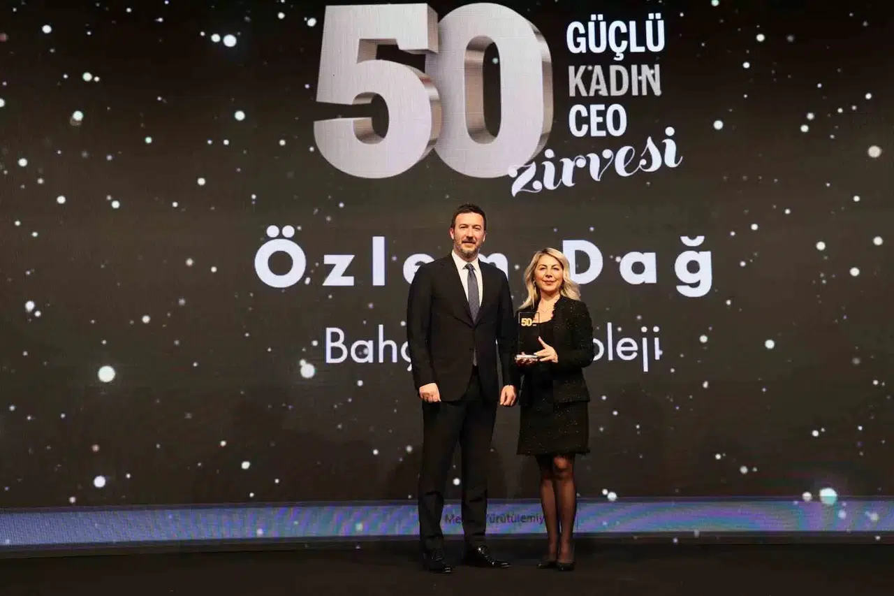 Bahçeşehir Koleji Genel Müdürü Özlem Dağ, fark oluşturan başarılı çalışmalarıyla hem “50 Güçlü Kadın CEO” hem de “Altın Lider Ödülü” aldı.