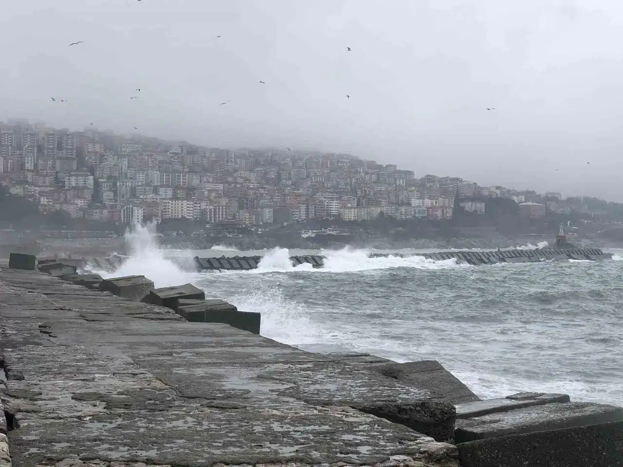 Zonguldak’ta gece saatlerinden itibaren sağanak ile etkili olan şiddetli rüzgar nedeniyle Liman Caddesi’nde dev dalgalar mendireği aştı.
