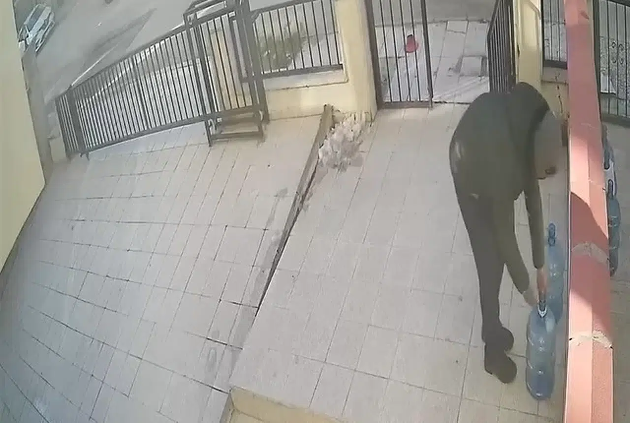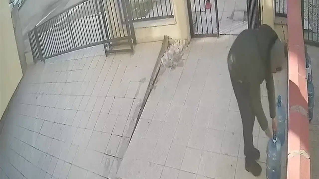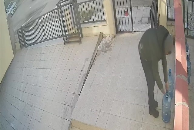 Eskişehir’de bir apartmanın önünde duran damacanaya asılı su parasının çalındığı anlar güvenlik kameralarına yansıdı.