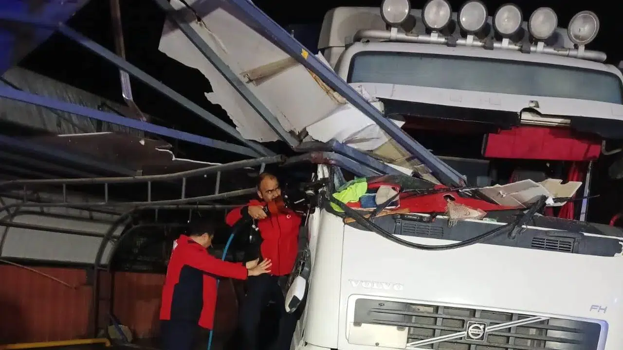 Edinilen bilgiye göre, merkez Akdeniz ilçesi Gazi Mahallesi İnönü Bulvarı üzerinde bulunan narenciye tesisine yükleme için gelen Ökkeş P. idaresindeki yabancı plakalı tır, manevra yaptığı sırada tesisteki korkuluk demiri şoför kabinine saplandı. Araç içerisinde sıkışan sürücü yaralanırken, olay yerine sağlık ve itfaiye ekipleri sevk edildi. Mersin Büyükşehir Belediyesine bağlı itfaiye ekiplerince yapılan çalışmada, sürücü Ökkeş P., sıkıştığı araçtan çıkarılarak sağlık ekiplerine teslim edildi. Ambulansla hastaneye kaldırılan tır sürcüsünün sağlık durumunun iyi olduğu bildirildi.