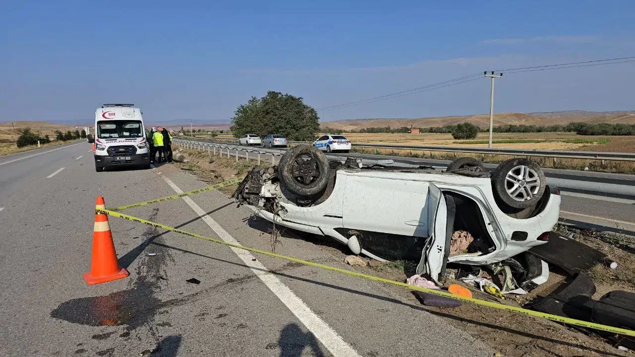 Çorum Sungurlu’da kontrolden çıkan otomobil refüje devrildi. Kazada izinden dönen polis memuru Kahraman Kudu (51) ve eşi Filiz Kudu hayatını kaybederken 2 çocuğu yaralandı.
